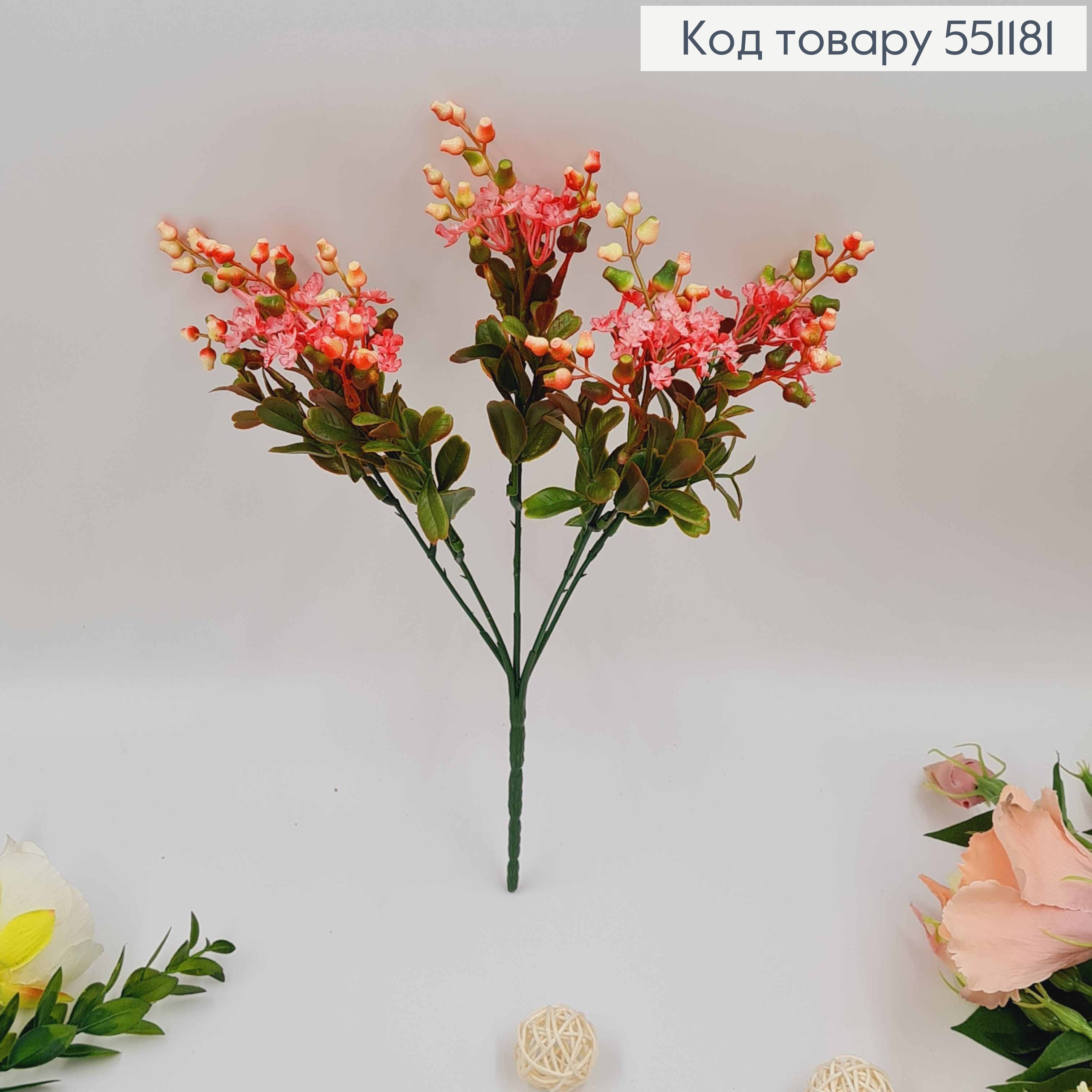 Искусственная декоративная зелень, 5 веточек, Самшит с ягодками, Красная, на металлическом стержне, 30см