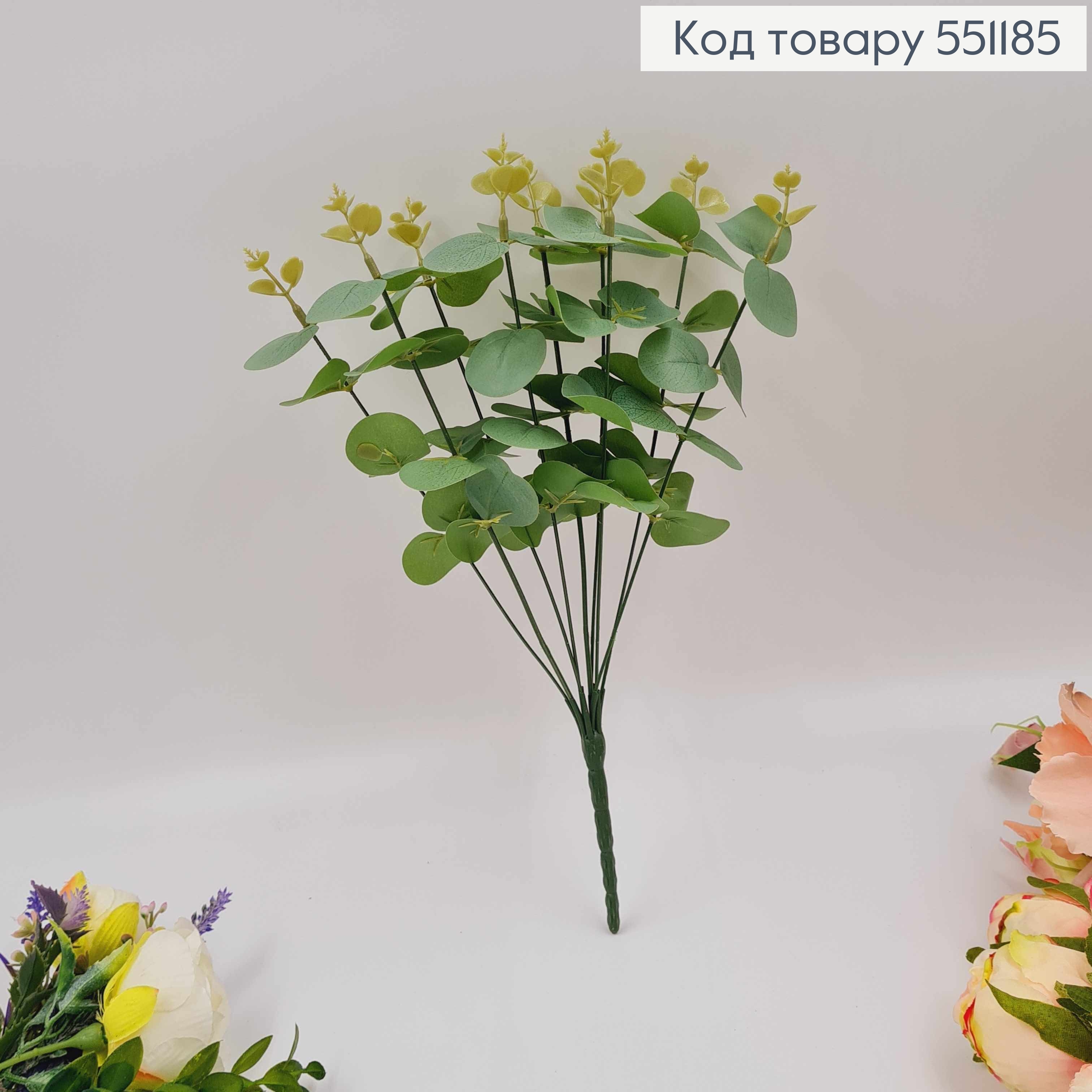 Искусственная декоративная зелень, 7 веточек, Эвкалипт, Зеленого цвета на металлическом стержне, 32см