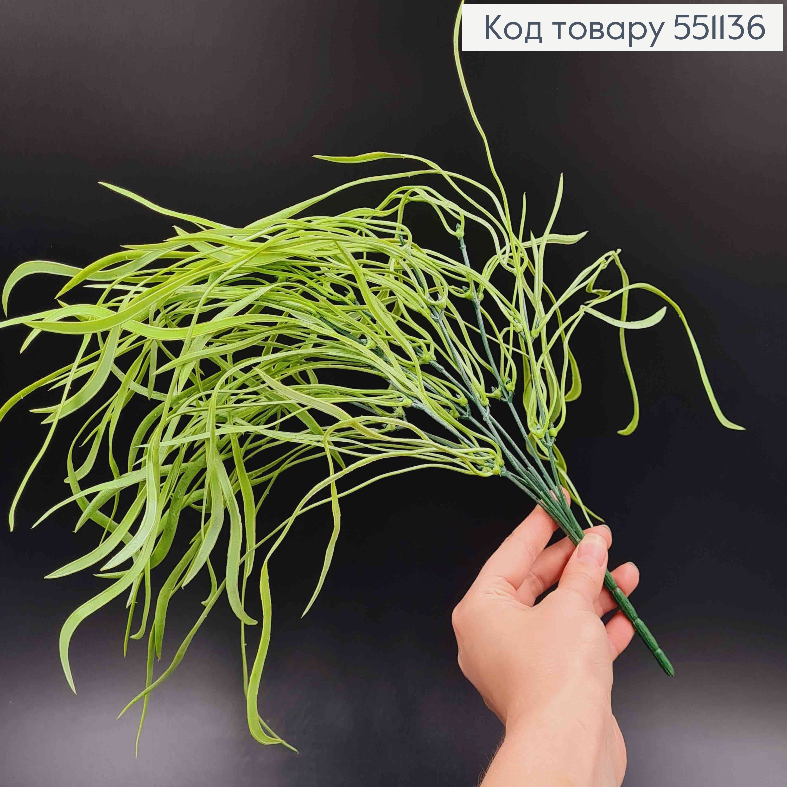 Искусственная декоративная зелень, 7 веточек, Витая травка, салатового цвета на металлическом стержне, 35см