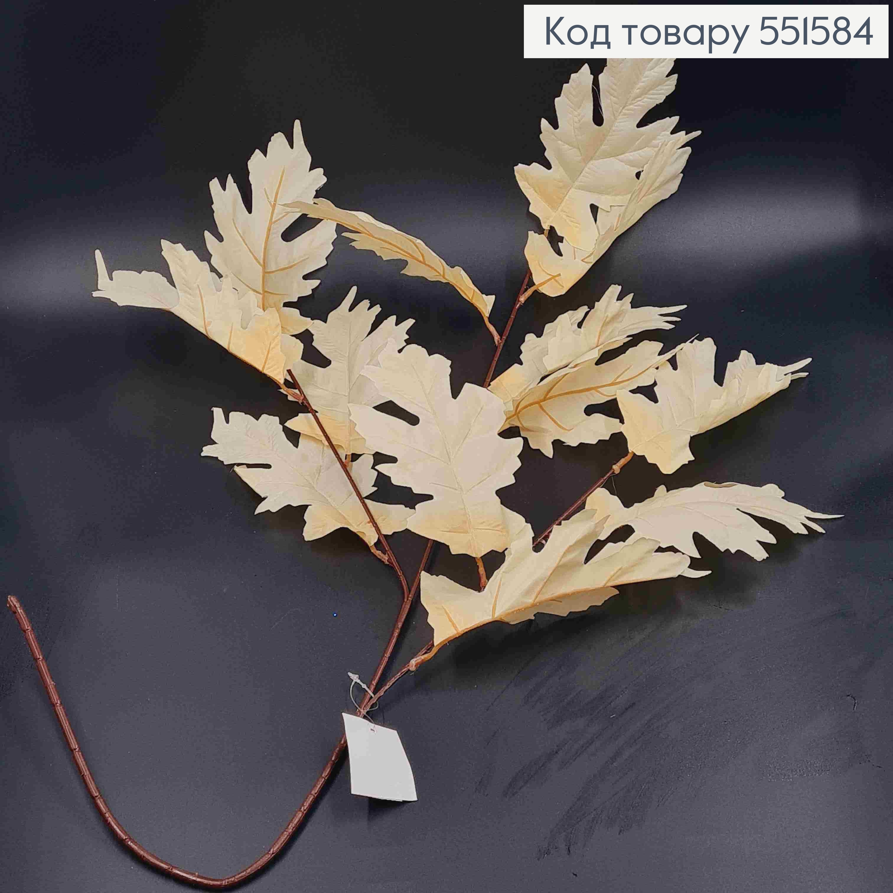 Искусственная ДУБОВАЯ веточка, БЕЖЕВАЯ, высота 100см, 12 листочков, на металлическом стержне