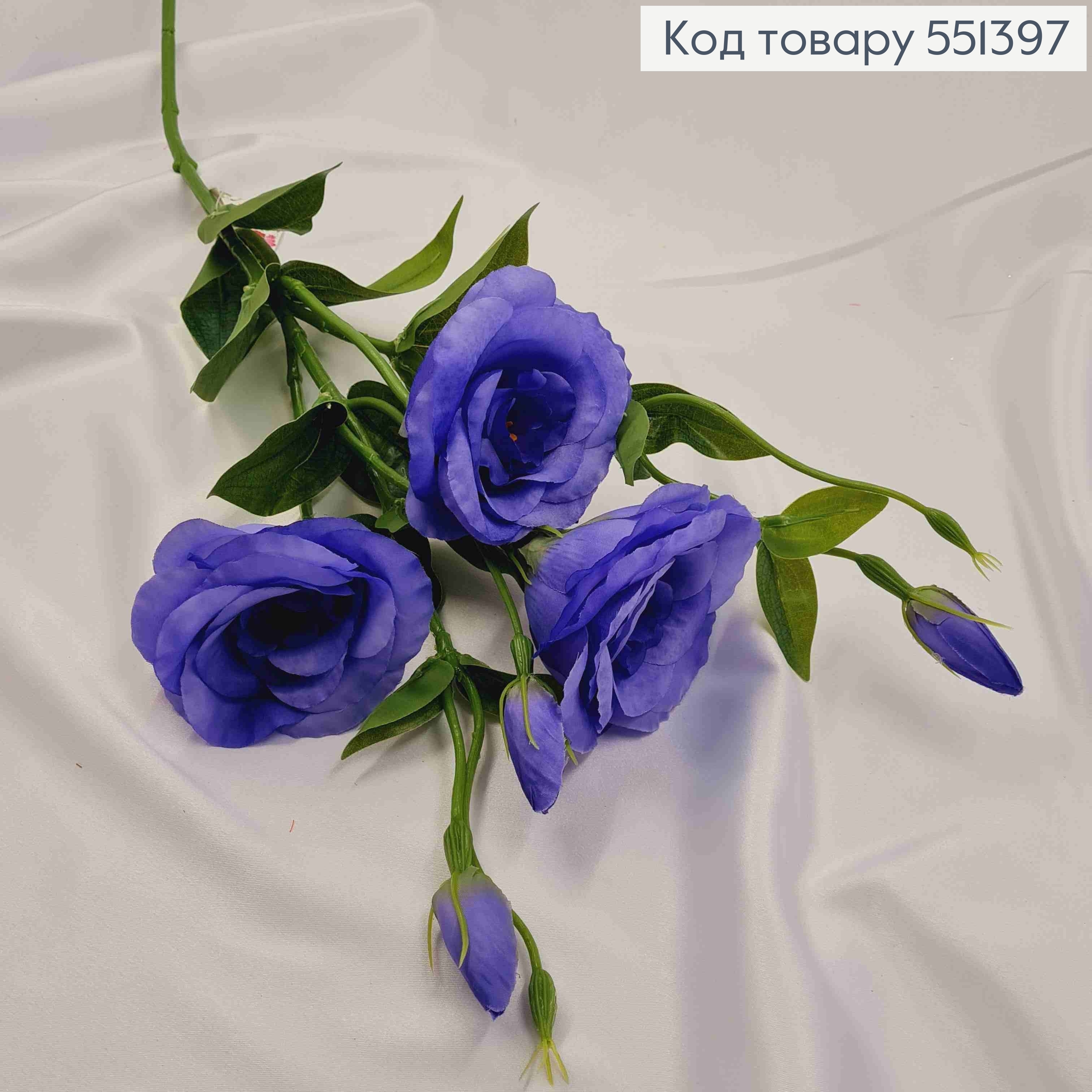 Искусственная ветвь Эустомы, фиолетового цвета, 3 цветочка и 3 бутона, высотой 80см.