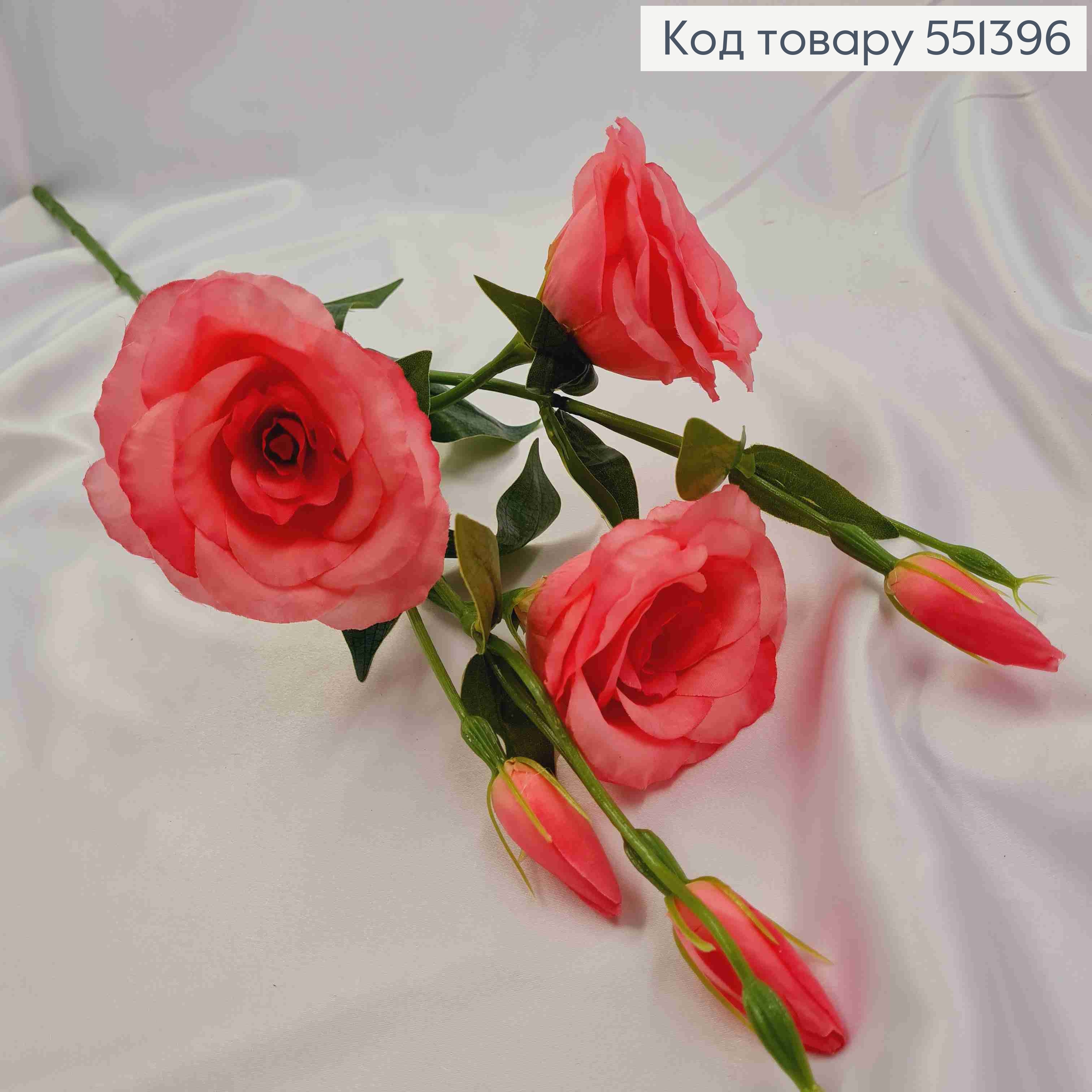 Искусственная ветвь Эустомы, Розового цвета, 3 цветочка и 3 бутона, высотой 80см.