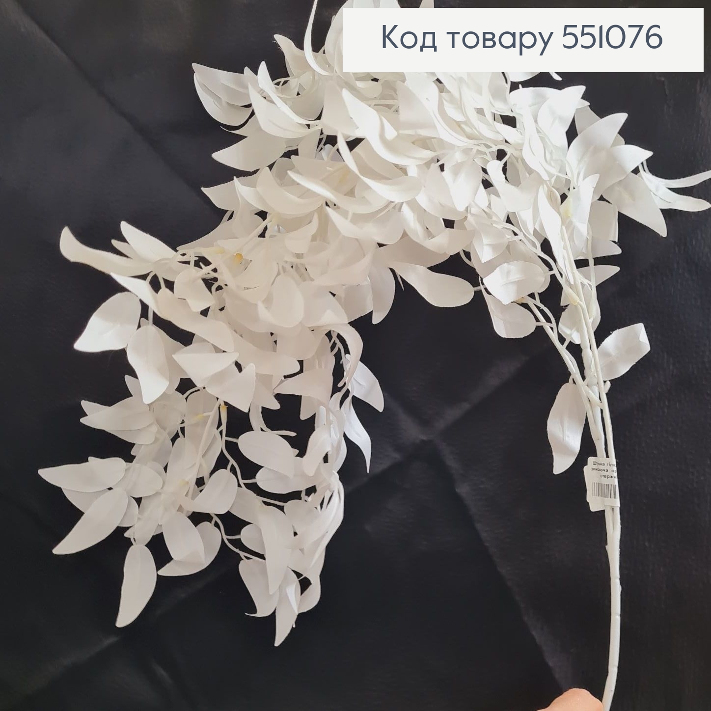Искусственная ДУБОВАЯ веточка, БЕЛАЯ, высота 100см, 12 листочков, на металлическом стержне 551587 фото