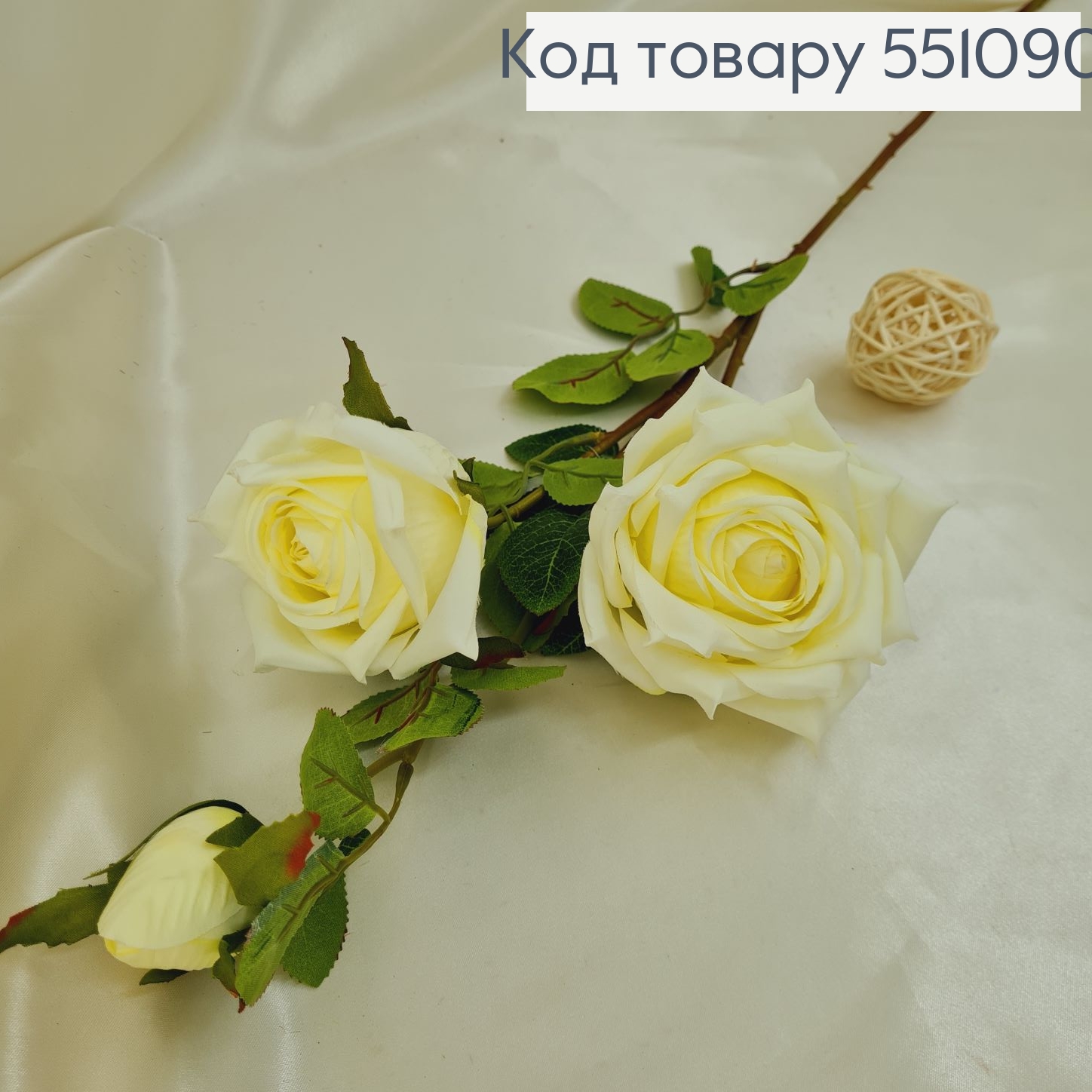 Искусственный цветок Розы, КРЕМОВОГО цвета, высота 70см, цветок 6*7см 551568 фото