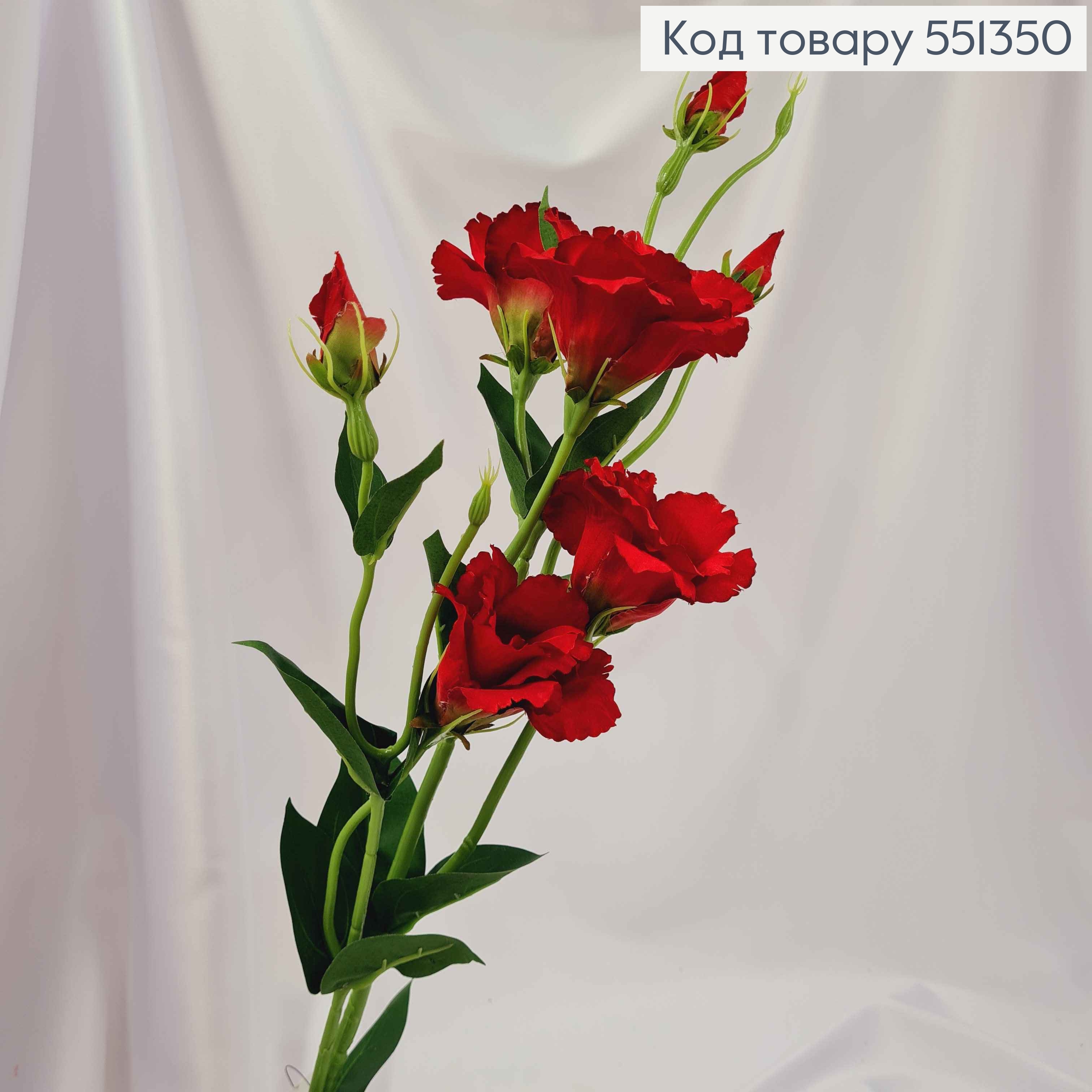 Искусственная веточка Эустома КРАСНОГО цвета, (4 цветка, 3 бутона), высота 82см
