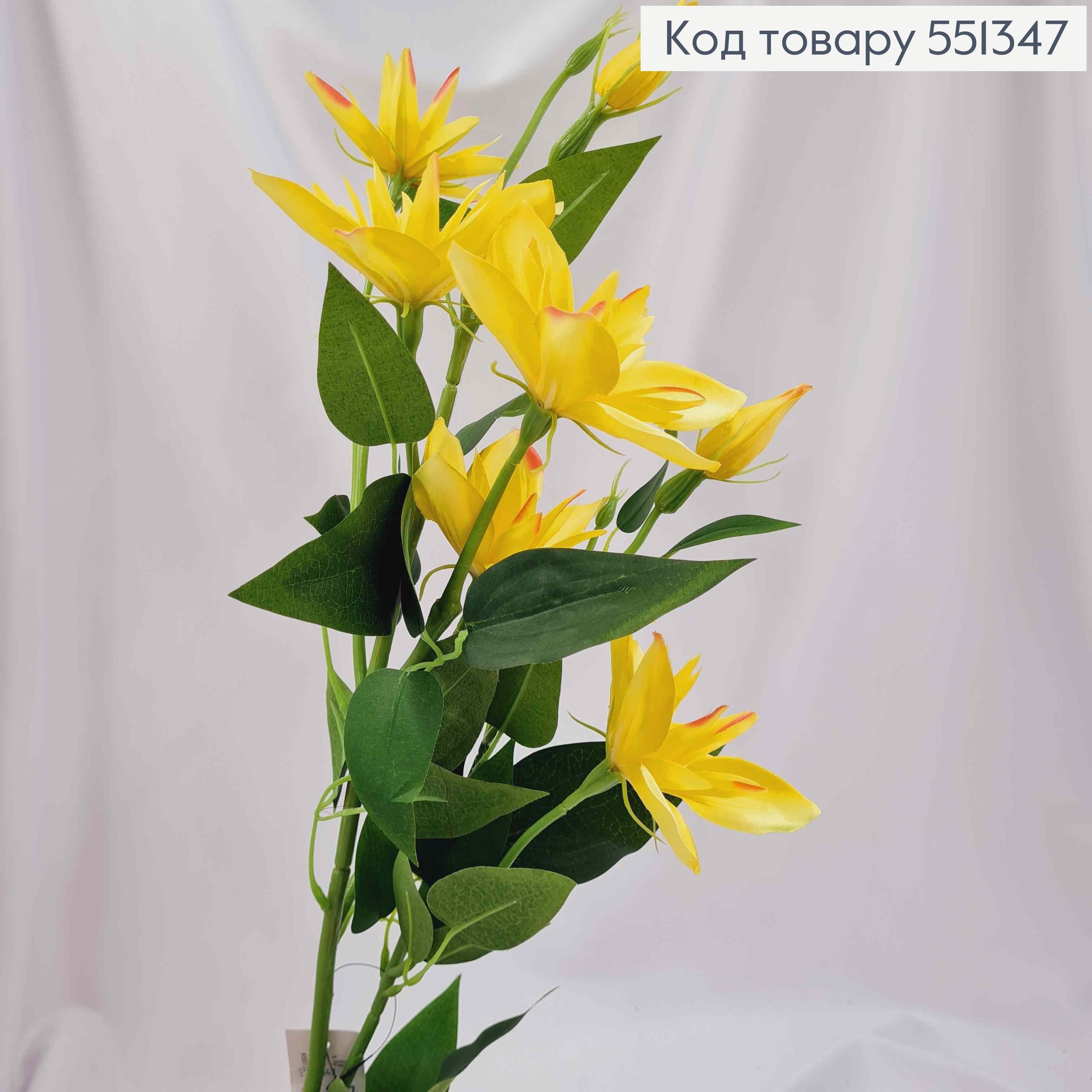 Искусственная веточка Клематис ЖЕЛТОГО цвета, (5 цветков, 2 бутона), высота 82см