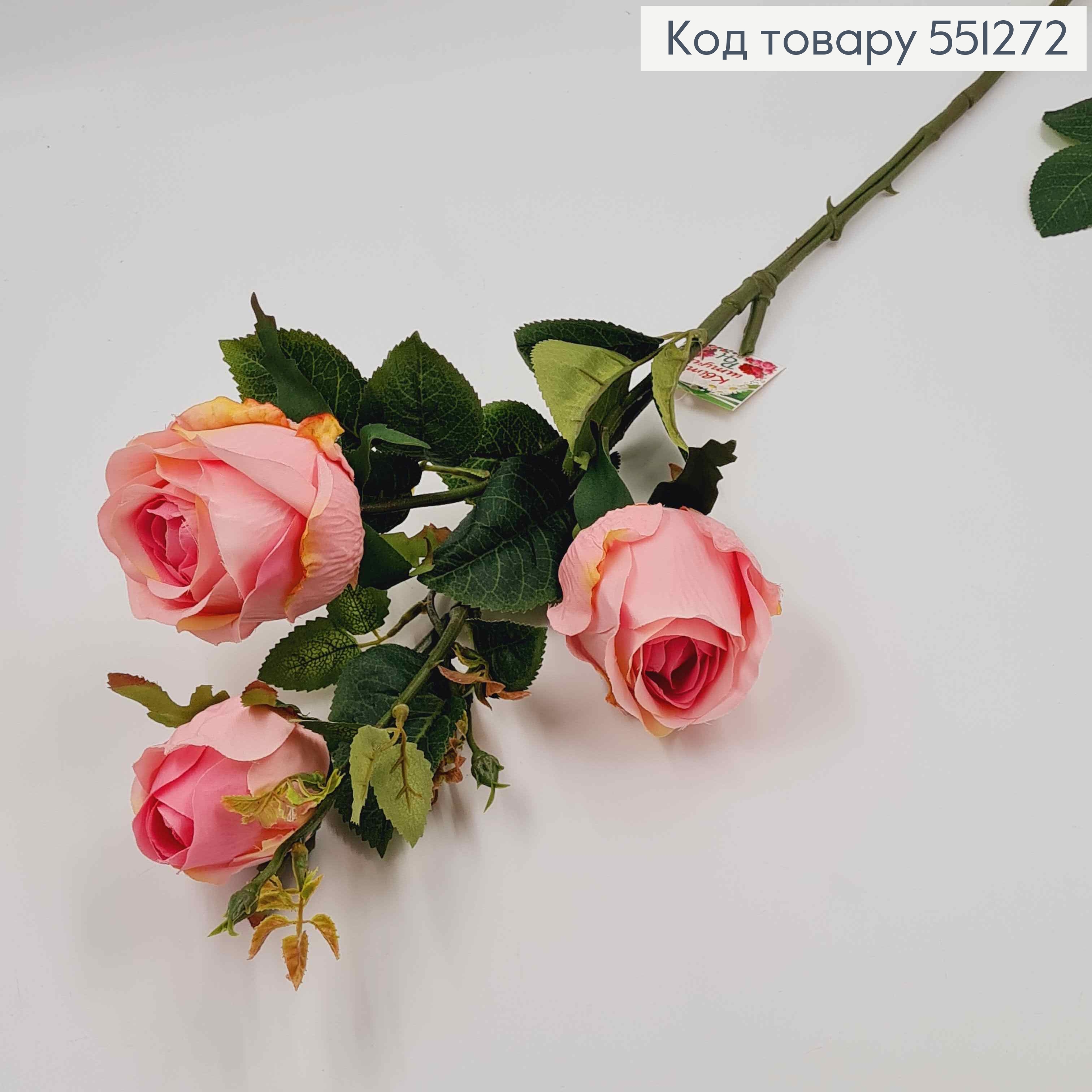 Искусственная веточка РОЗОВИЕ розы (3 цветочка), высотой 77см