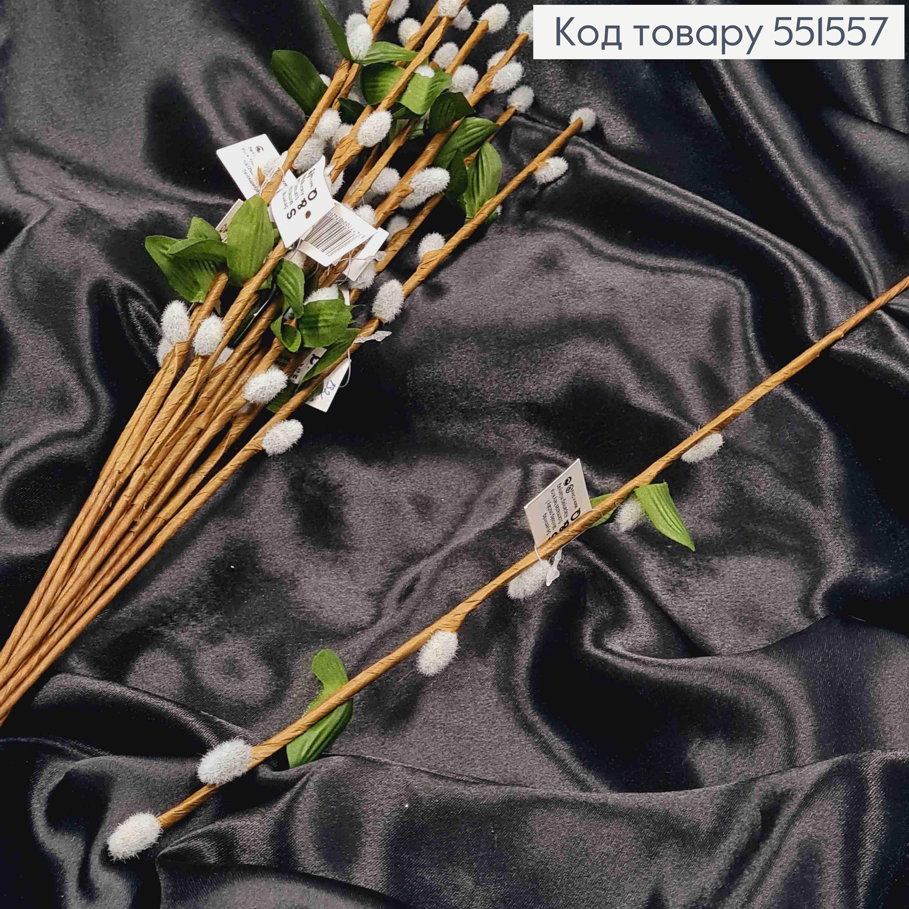 Искусственная веточка Ивы, котики серого цвета, на металлической основе, высота 40см, цена за 1шт.
