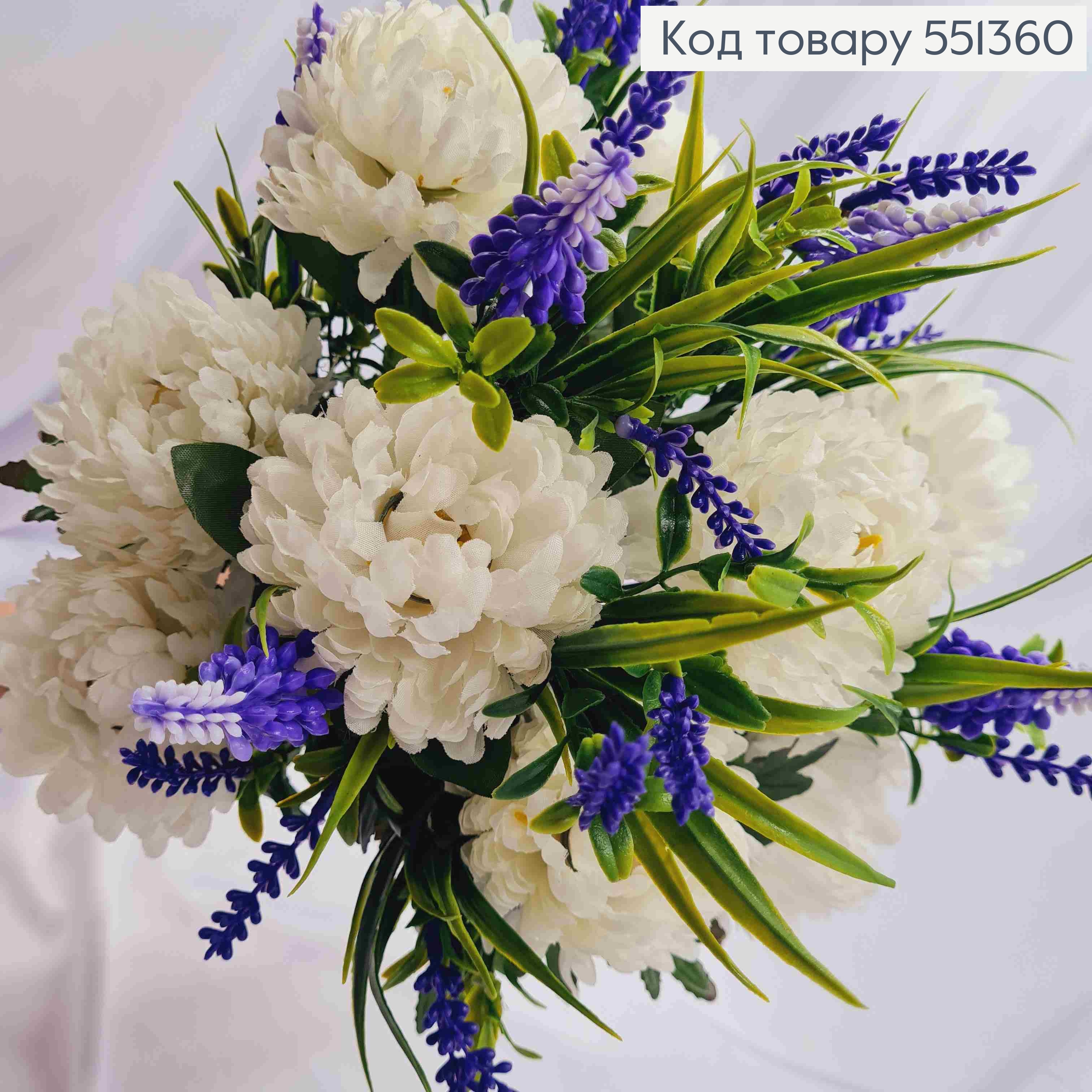 Искусственная композиция Белые ХРИЗАНТЕМЫ с ЛАВАНДОЙ, 18 веток с цветами на металлическом стержне, 42см