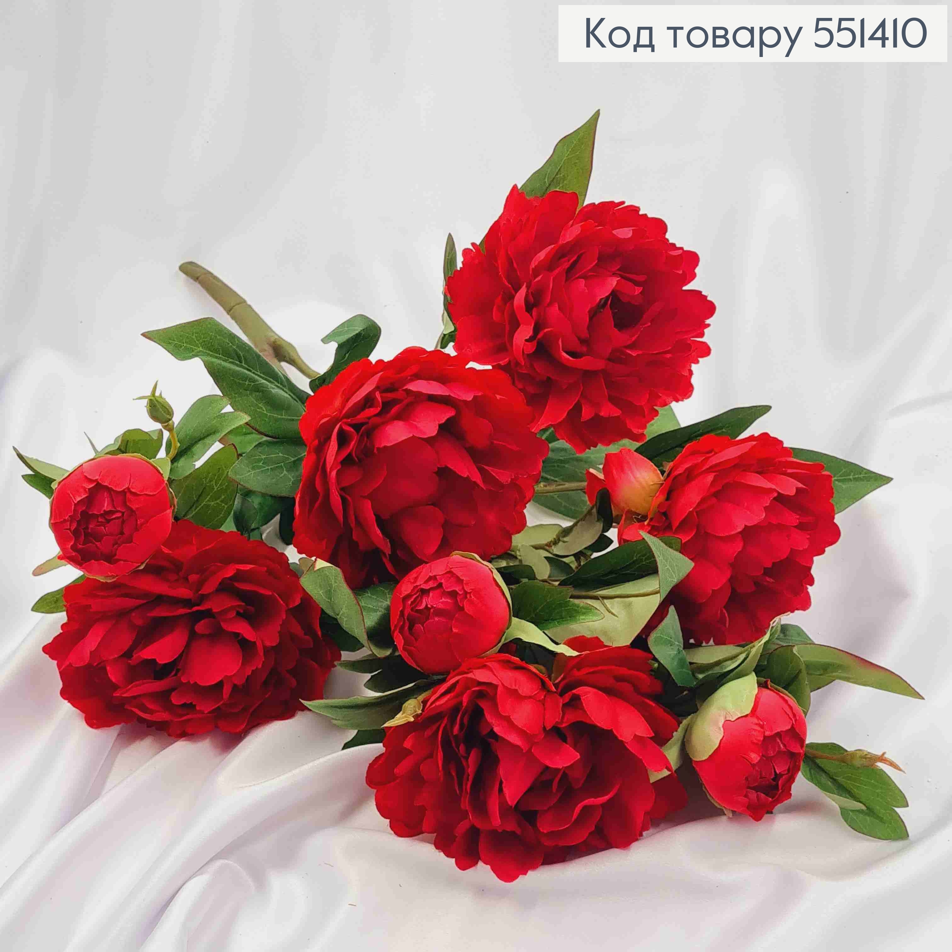 Искусственная композиция Пионы, КРАСНОГО цвета, 3 ветки, 5 цветов, 3 бутона, высота 56см