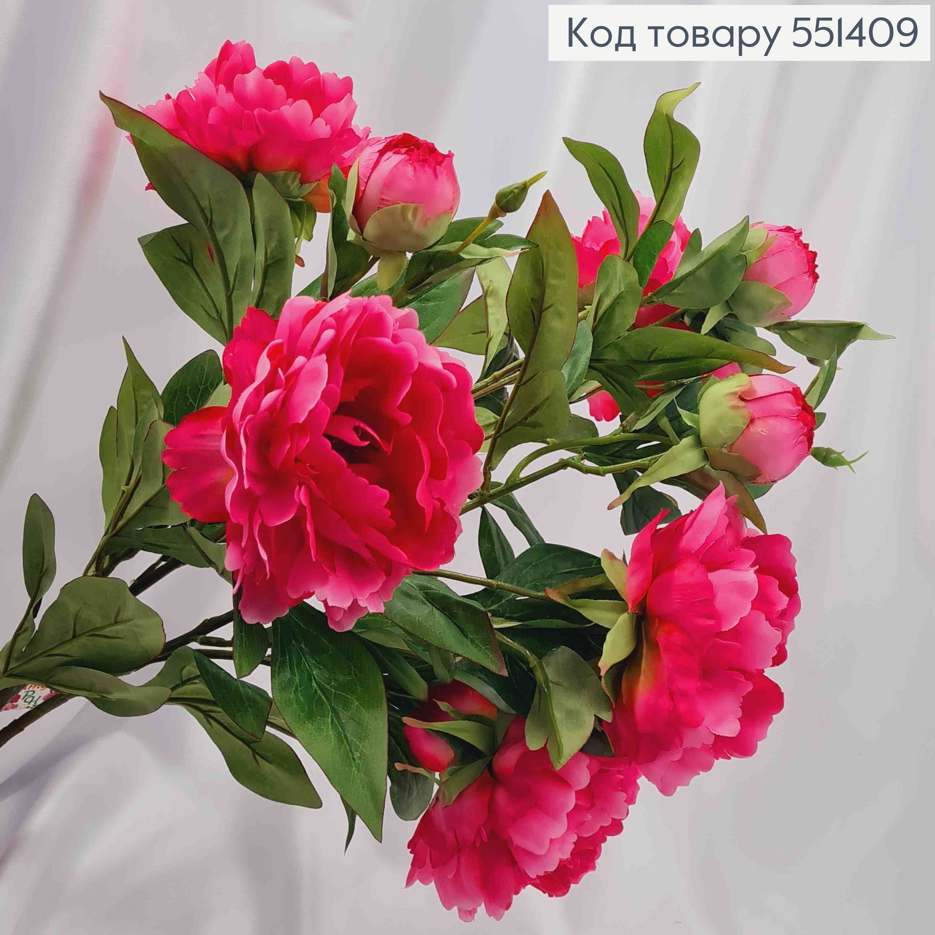 Искусственная композиция Пионы, ТЕМНО-РОЖЕВОГО цвета, 3 ветки, 5 цветов, 3 бутона, высота 56см