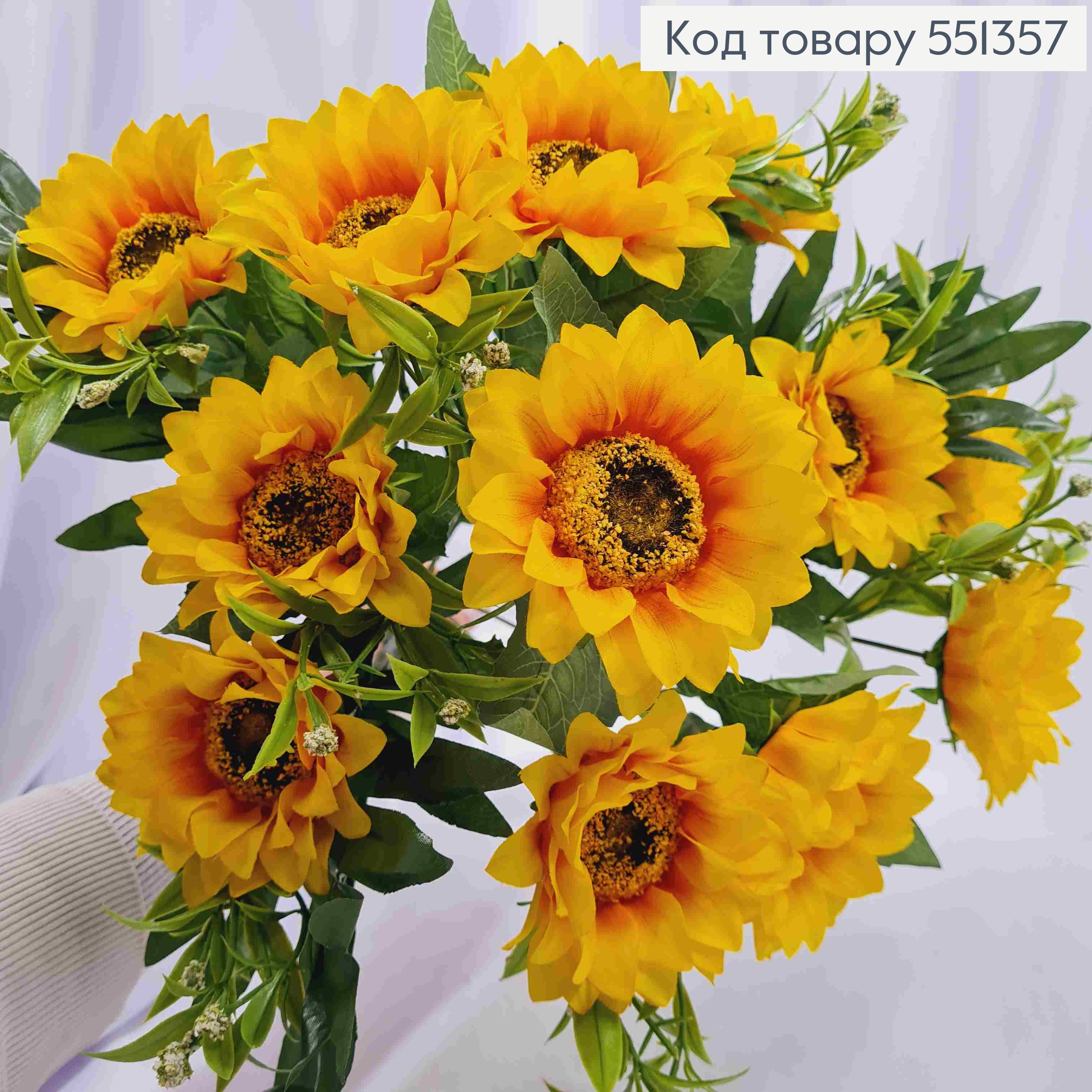 Искусственная композиция ПОДСОЛНЕЧНИК, цвет Желтый, 12 веток с цветами на металлическом стержне, 47см