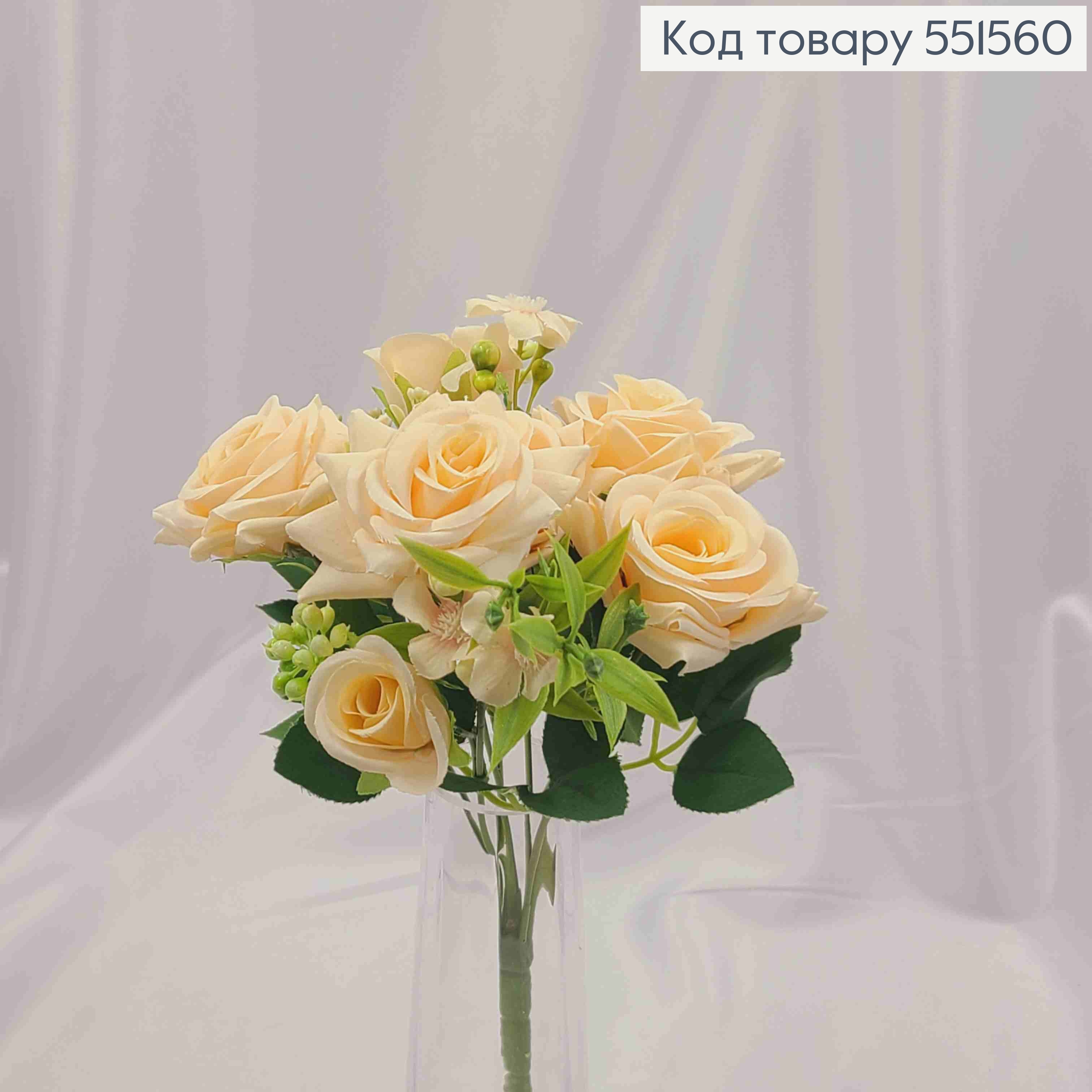 Искусственный цветок Розы, КРЕМОВОГО цвета, высота 70см, цветок 6*7см 551568 фото