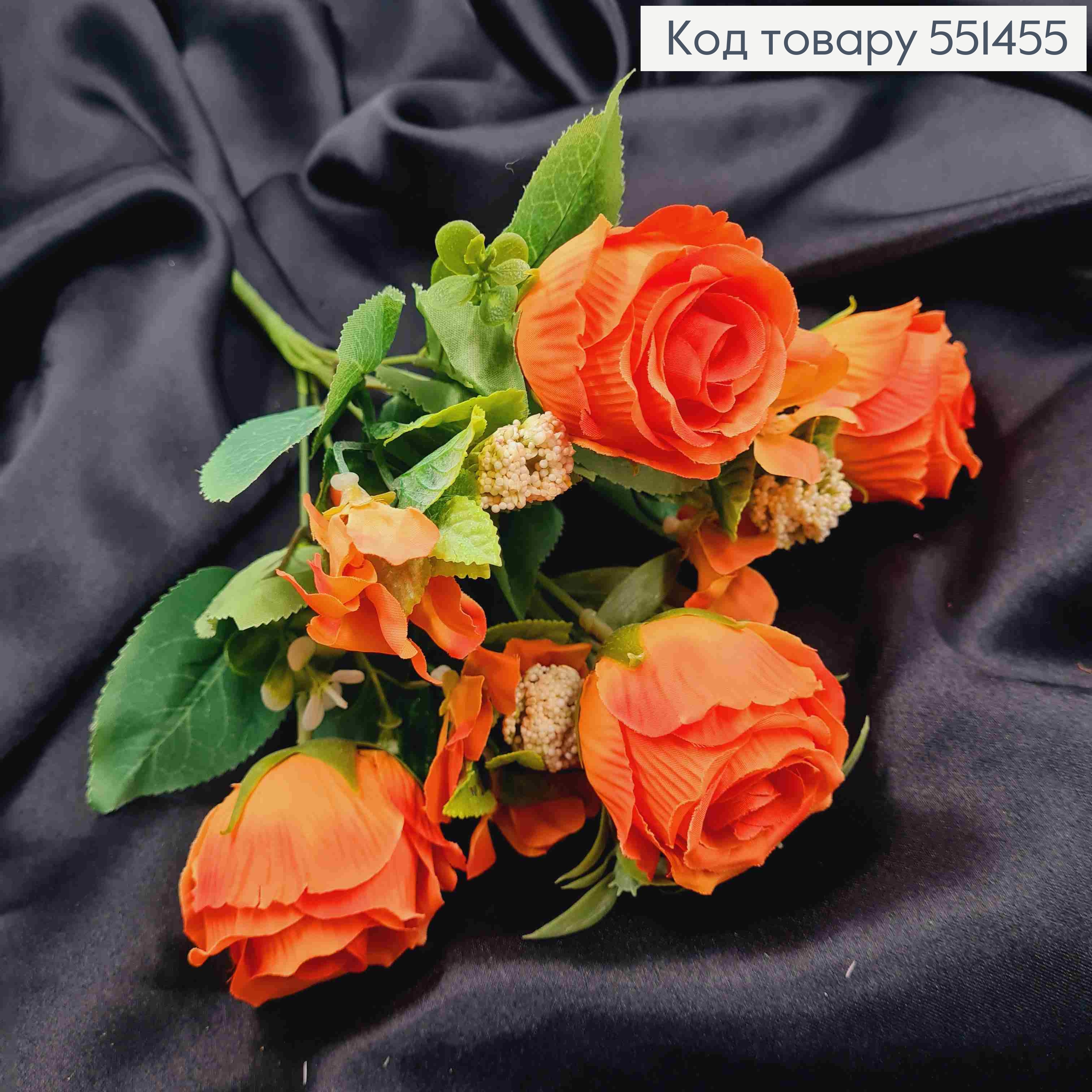 Искусственная композиция Розы с Жасмином, Оранжевого цвета, 7 веточек на металл.стержне, высота 33см