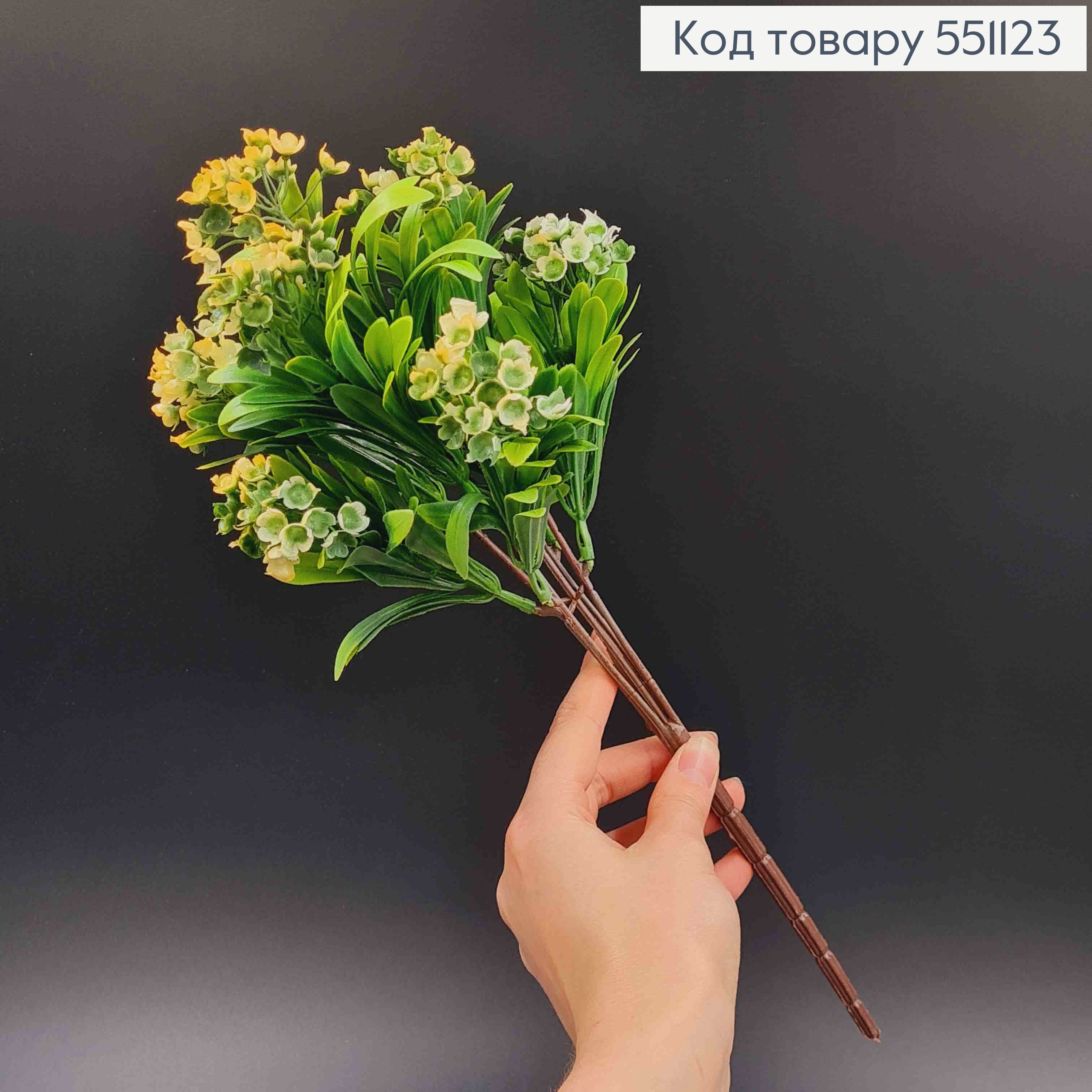 Искусственный цветок, 5 веточек, Ландыш, омбре Желто-белый, на металлическом стержне, 35см