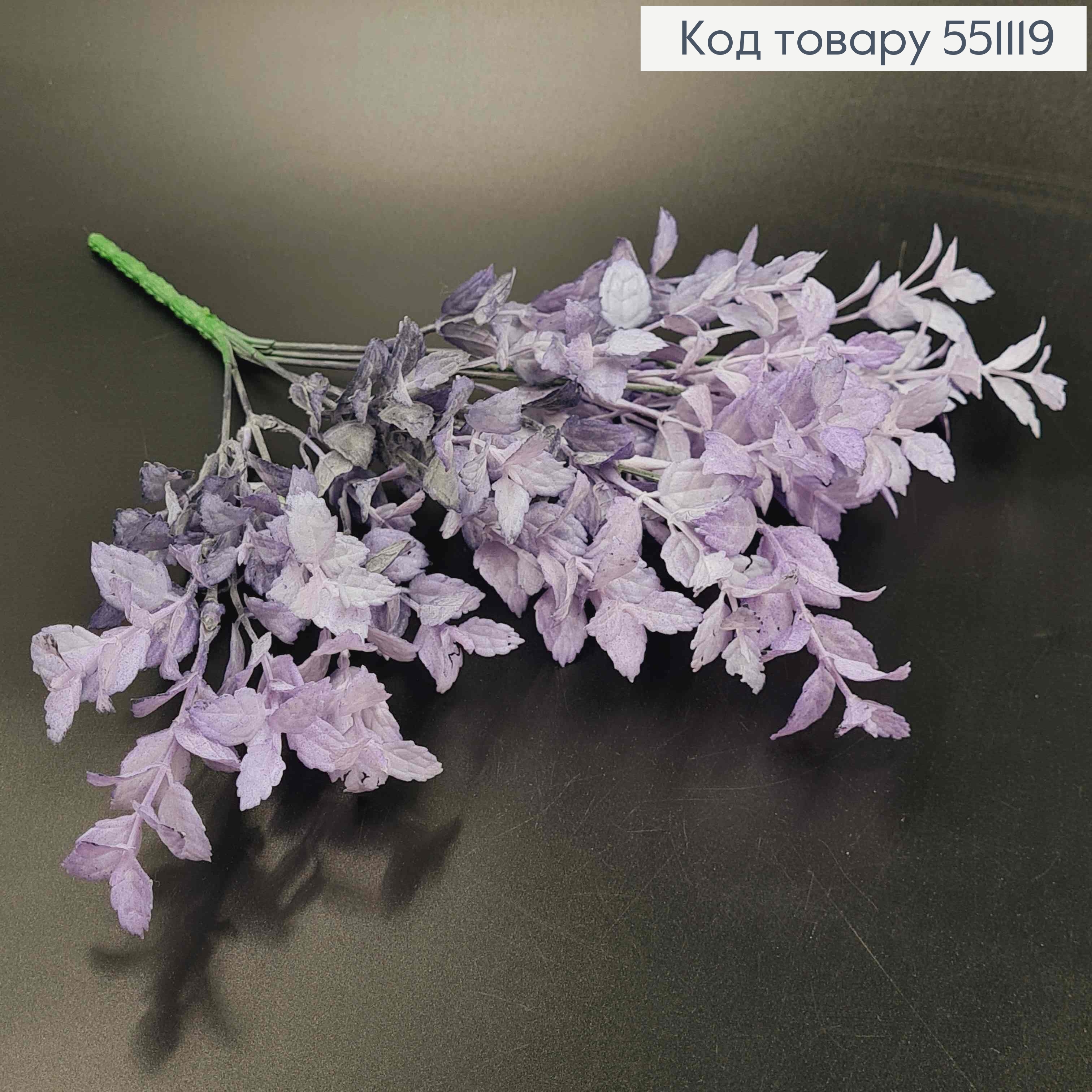 Искусственный цветок, 7 веточек, полевая мята, Лиловая, на металлическом стержне, 35см