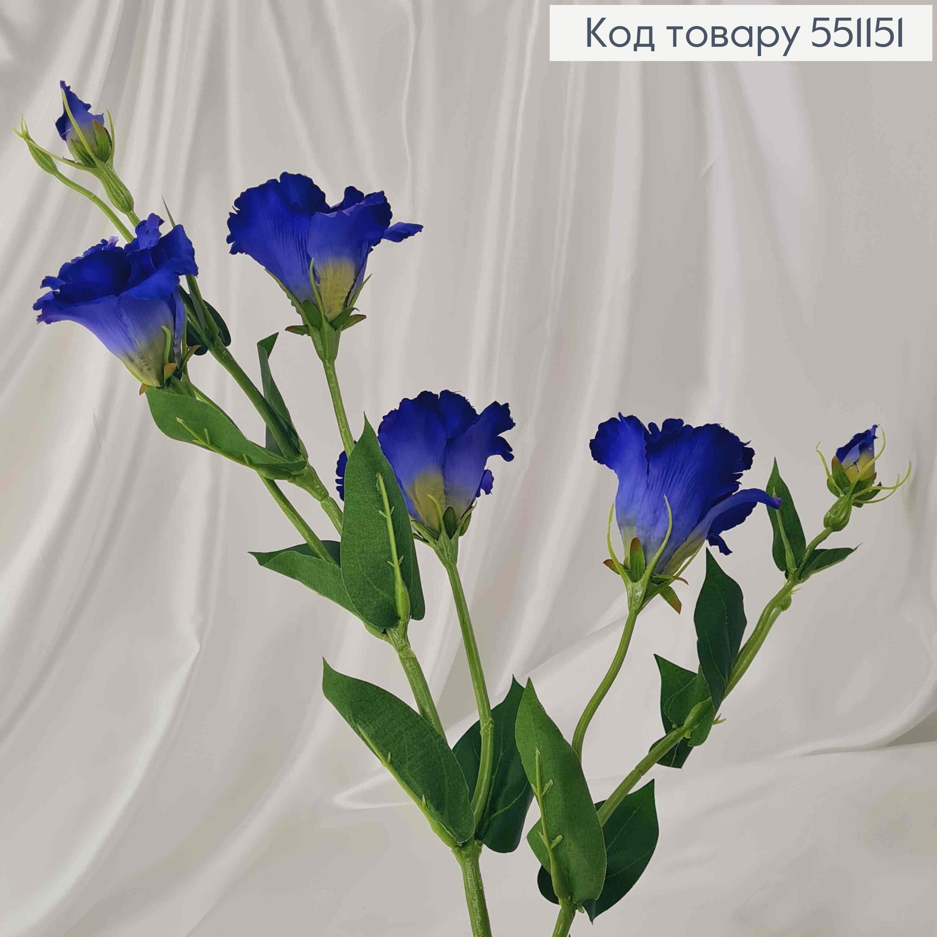 Искусственный цветок Эустомы, СИНЯЯ, 4 цветка + 3 бутона, на металлическом стержне, 82см