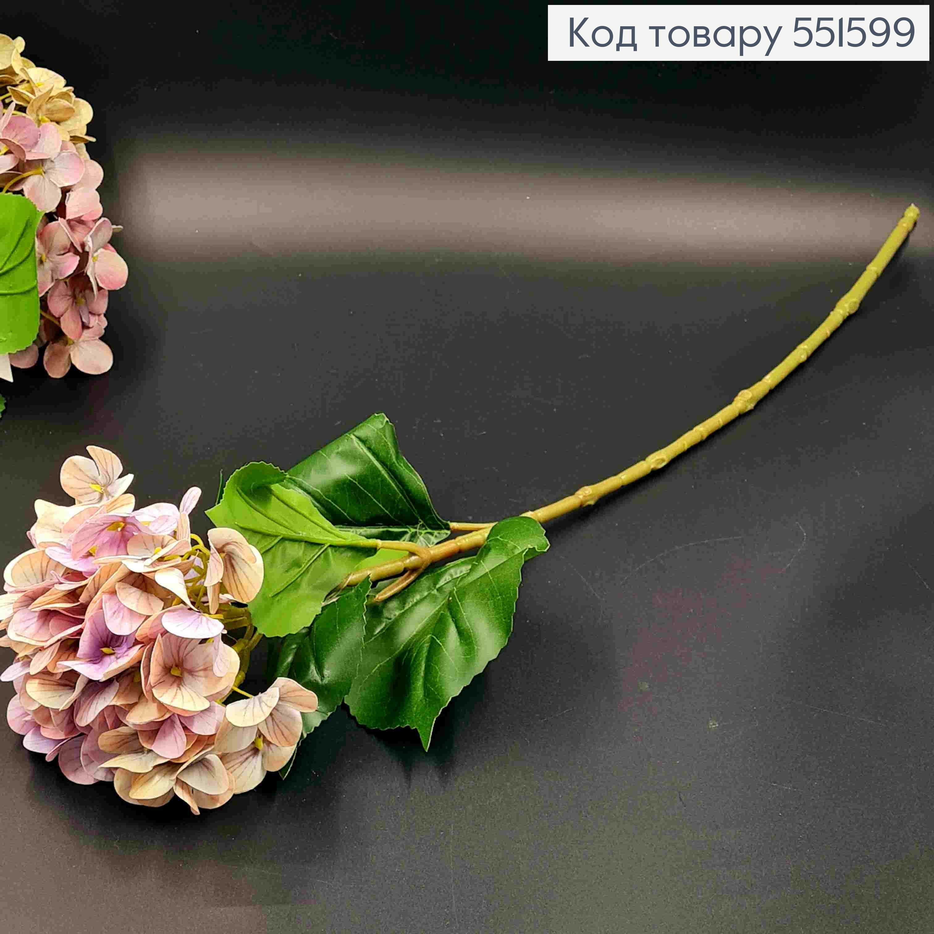 Искусственный цветок Гортензии, ПУДРОВОГО цвета, высота 67см, на металлическом стержне 551600 фото