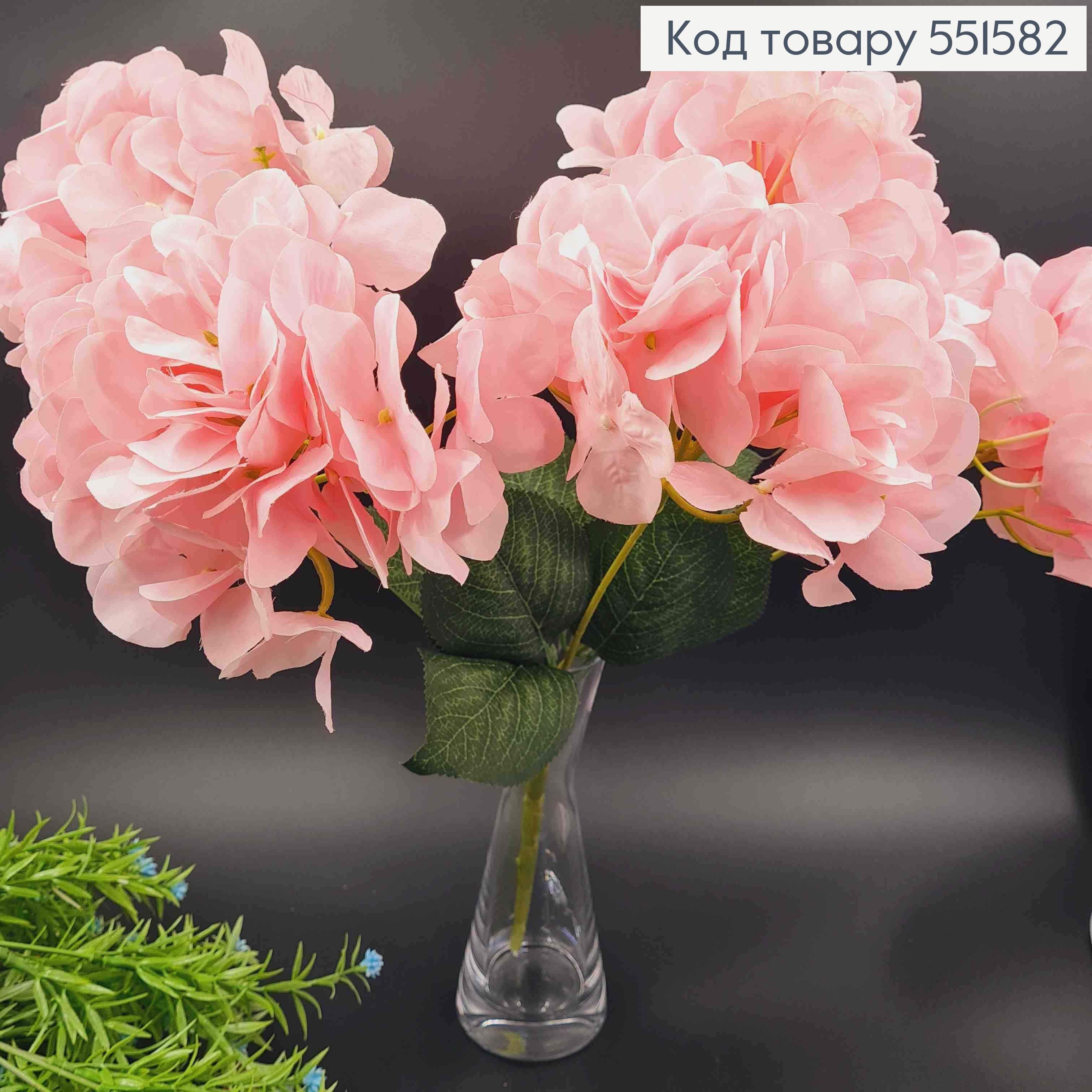 Искусственный цветок Гортензии, НЕЖНО-РОЗОВОГО цвета, высота 49см, на 5 веточек, на металлическом стержне