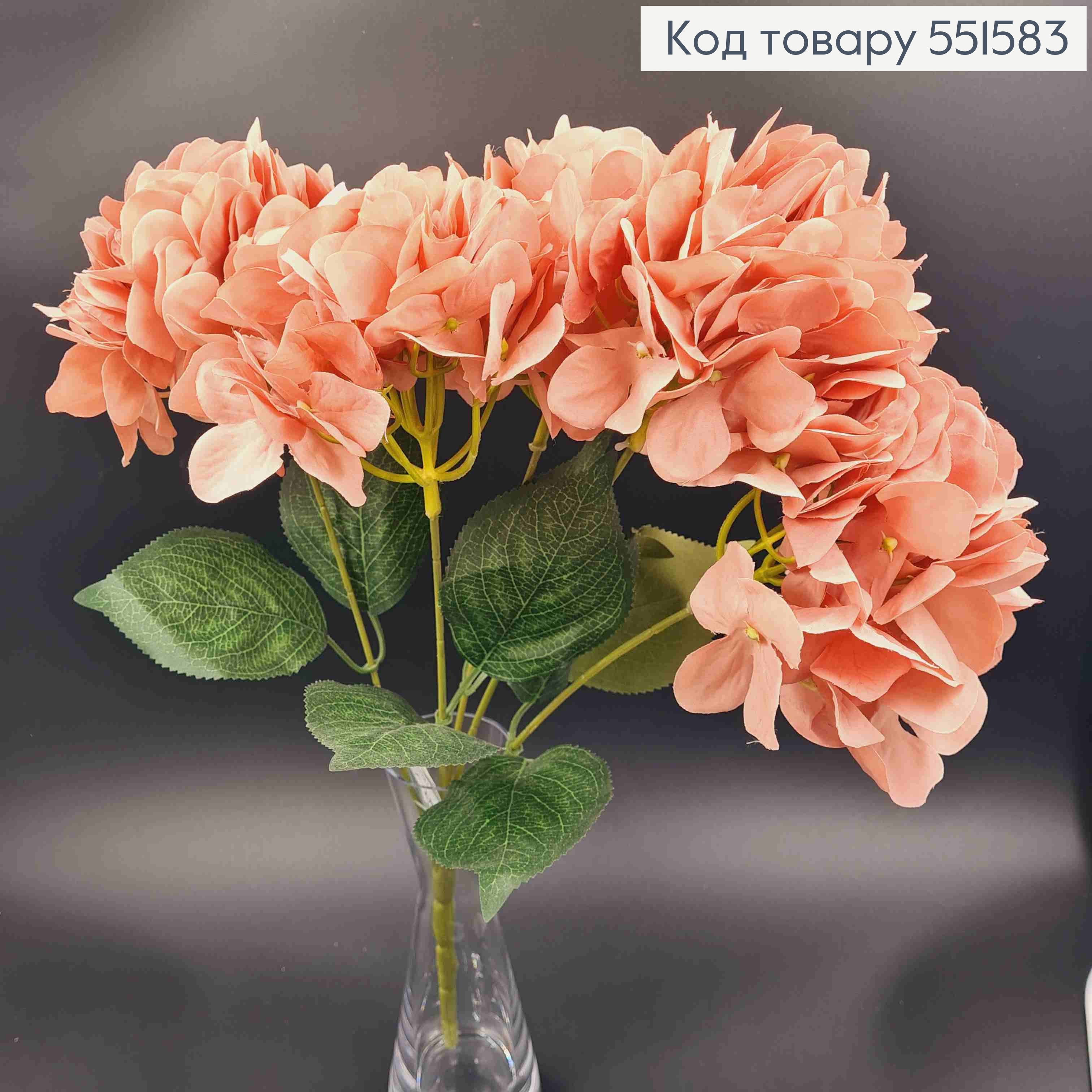 Искусственный цветок Гортензии, ПУДРОВОГО цвета, высота 49см, на 5 веточек, на металлическом стержне