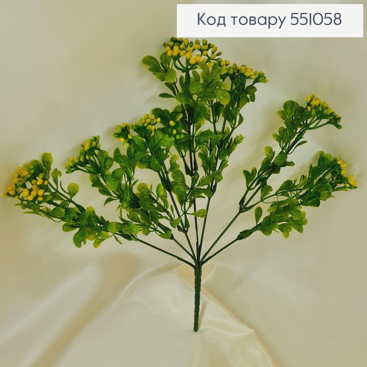 Искусственный цветок каланхоэ желтый пластик из 7 веточек на металлическом стержне 30см.