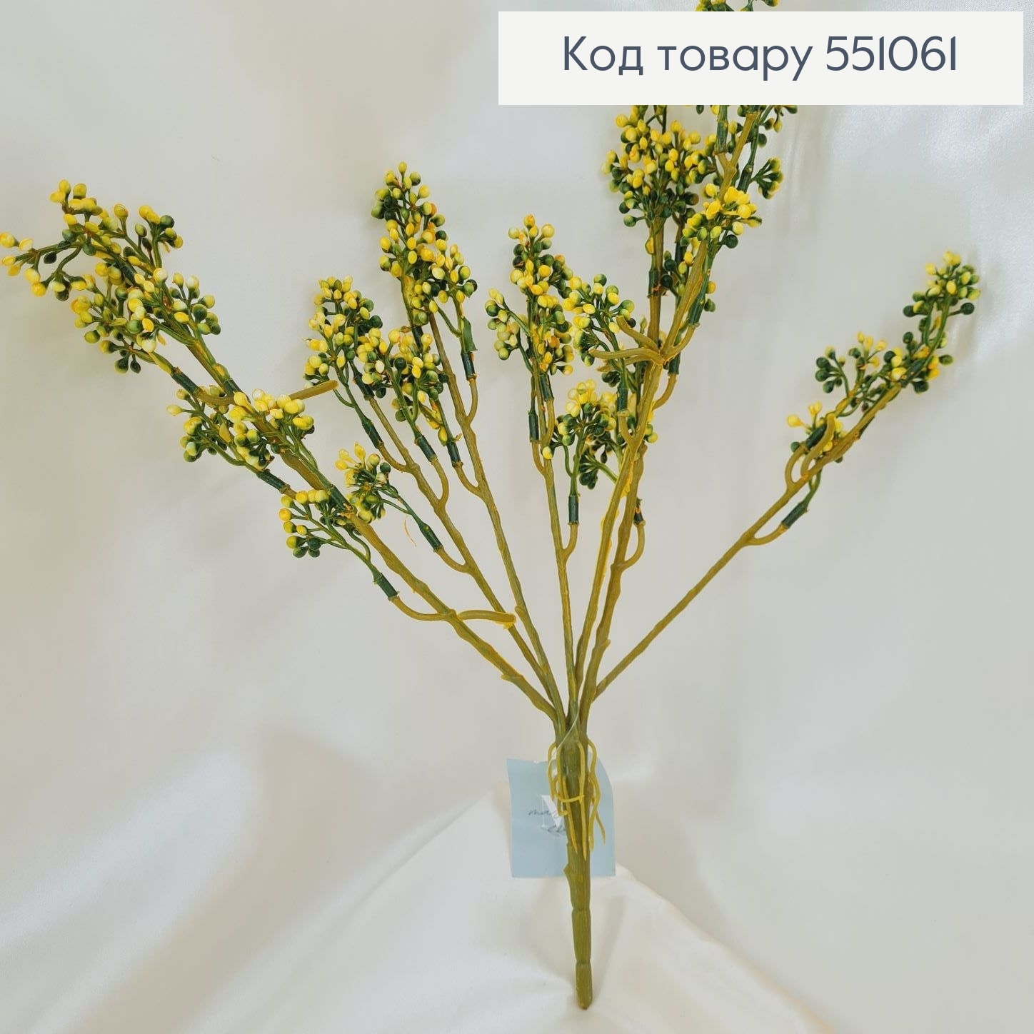 Искусственный цветок желтый пластик из 7 веточек на металлическом стержне 37см.
