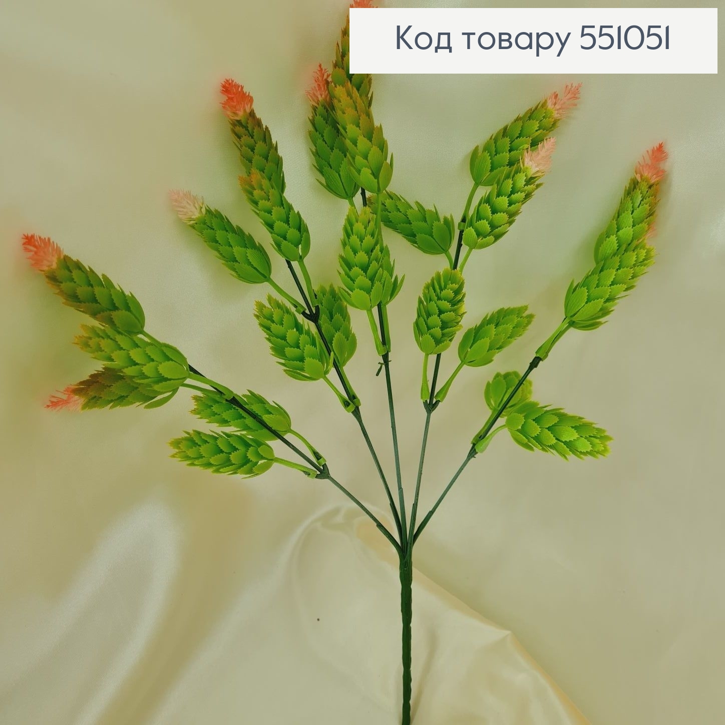 Искусственная зелень хмель с розовыми кончиками из 5 веточек на металлическом стержне 35 см.