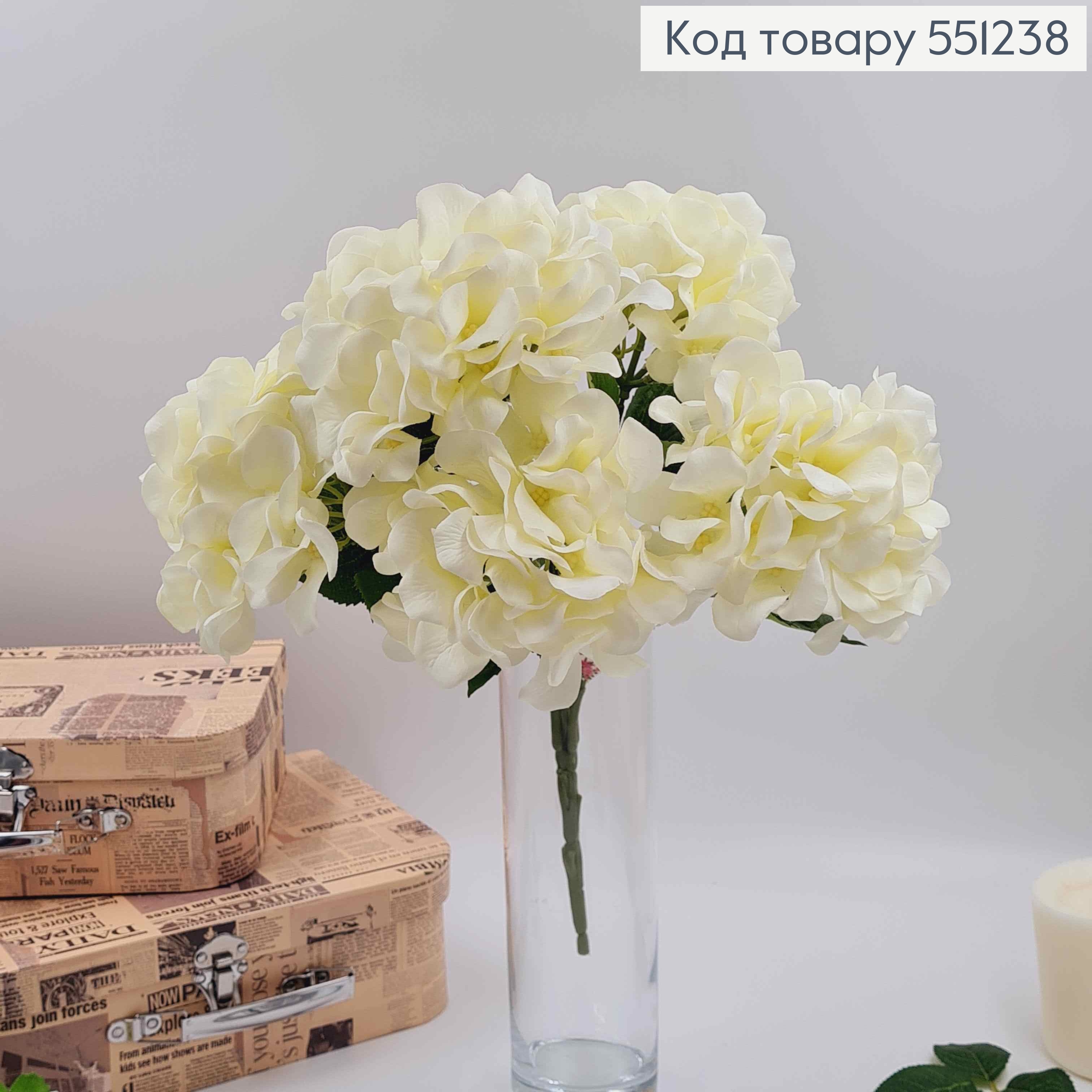 Искусственные цветы. Ветвь БЕЛЫХ гортензий (5 пучков), высотой 46 см, диаметр одного цветочка 7см.