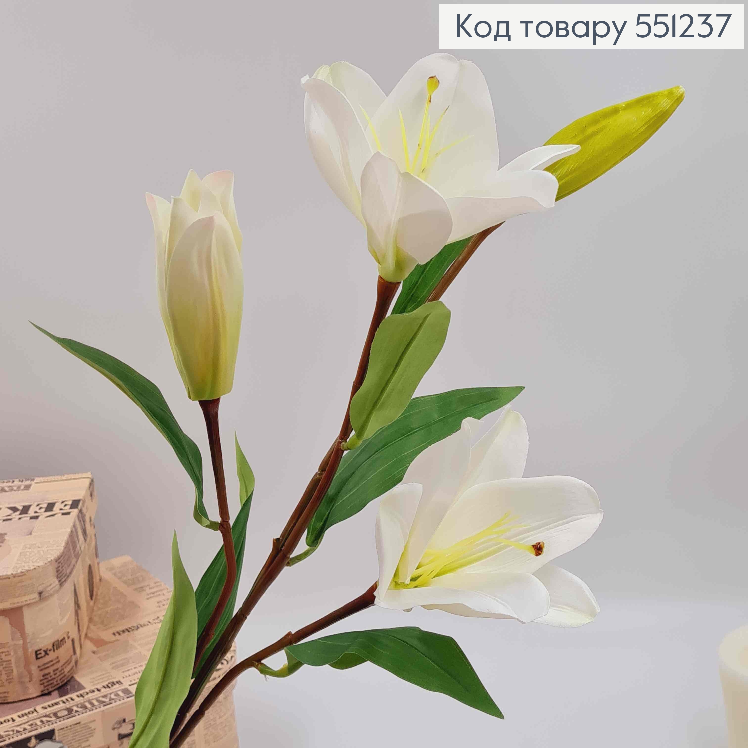 Искусственные цветы. Ветвь БЕЛЫХ лилий на 3 цветочка и бутон, высотой 78см