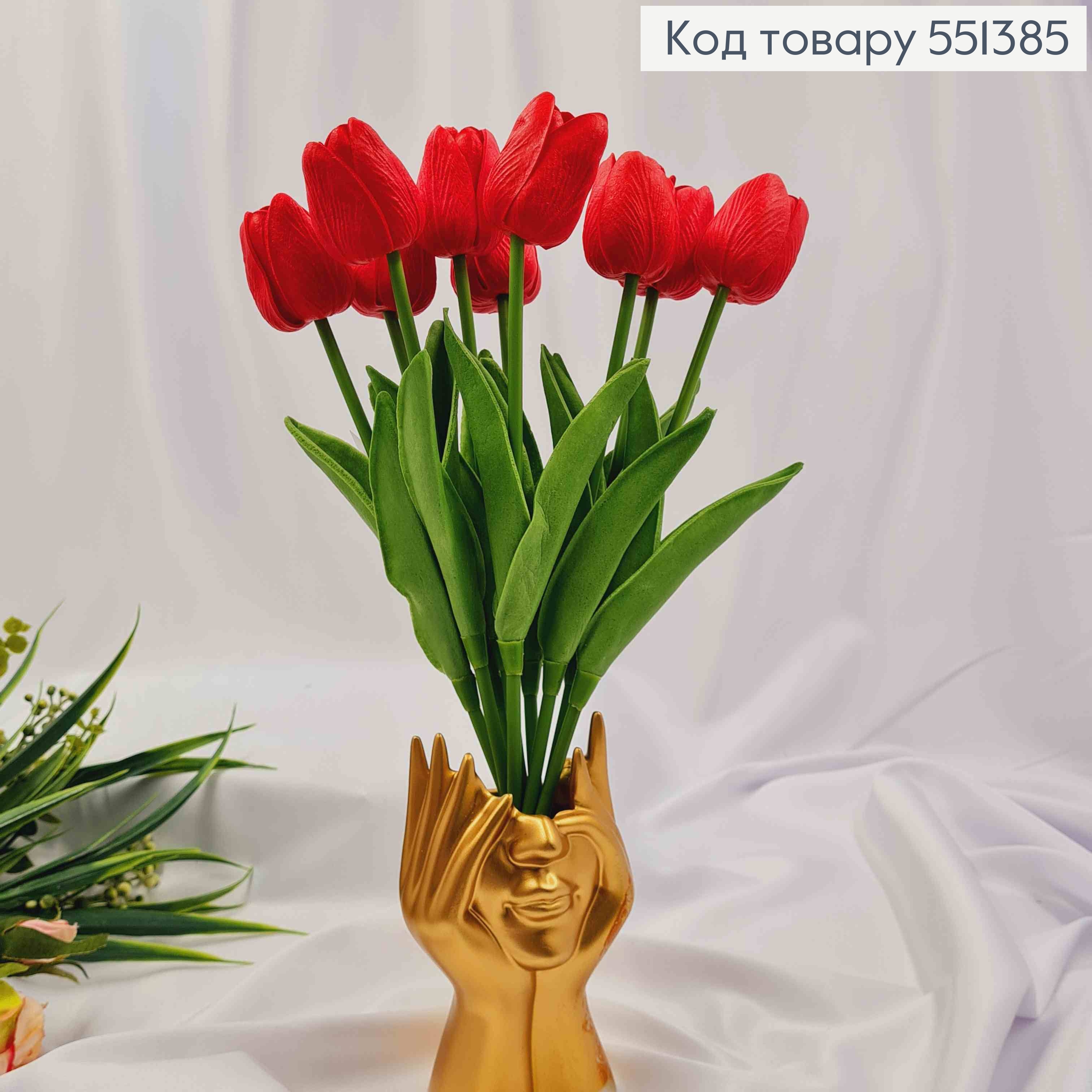 Искусственные цветы ТЮЛЬПАН, Красного цвета (полиуретановые), 9шт/букет, высота 33см, цветок 4см
