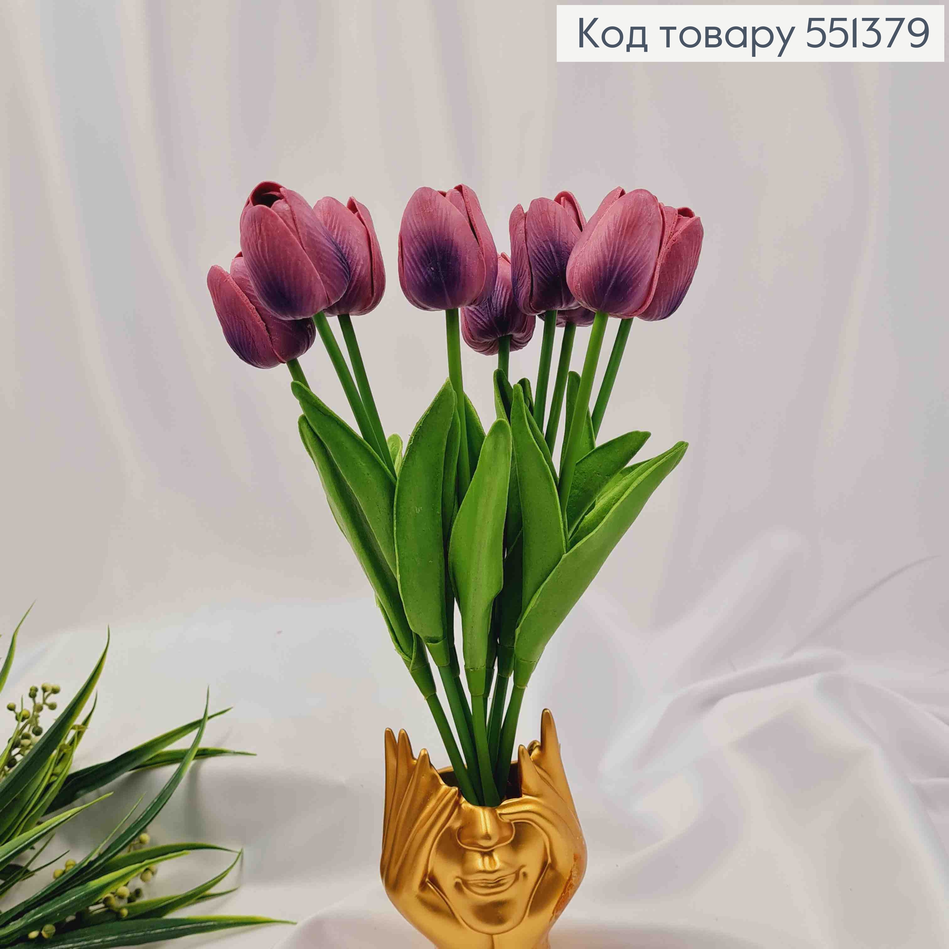 Искусственные цветы ТЮЛЬПАН, Фиолетового цвета (полиуретановые), 9шт/букет, высота 33см, цветок 4см