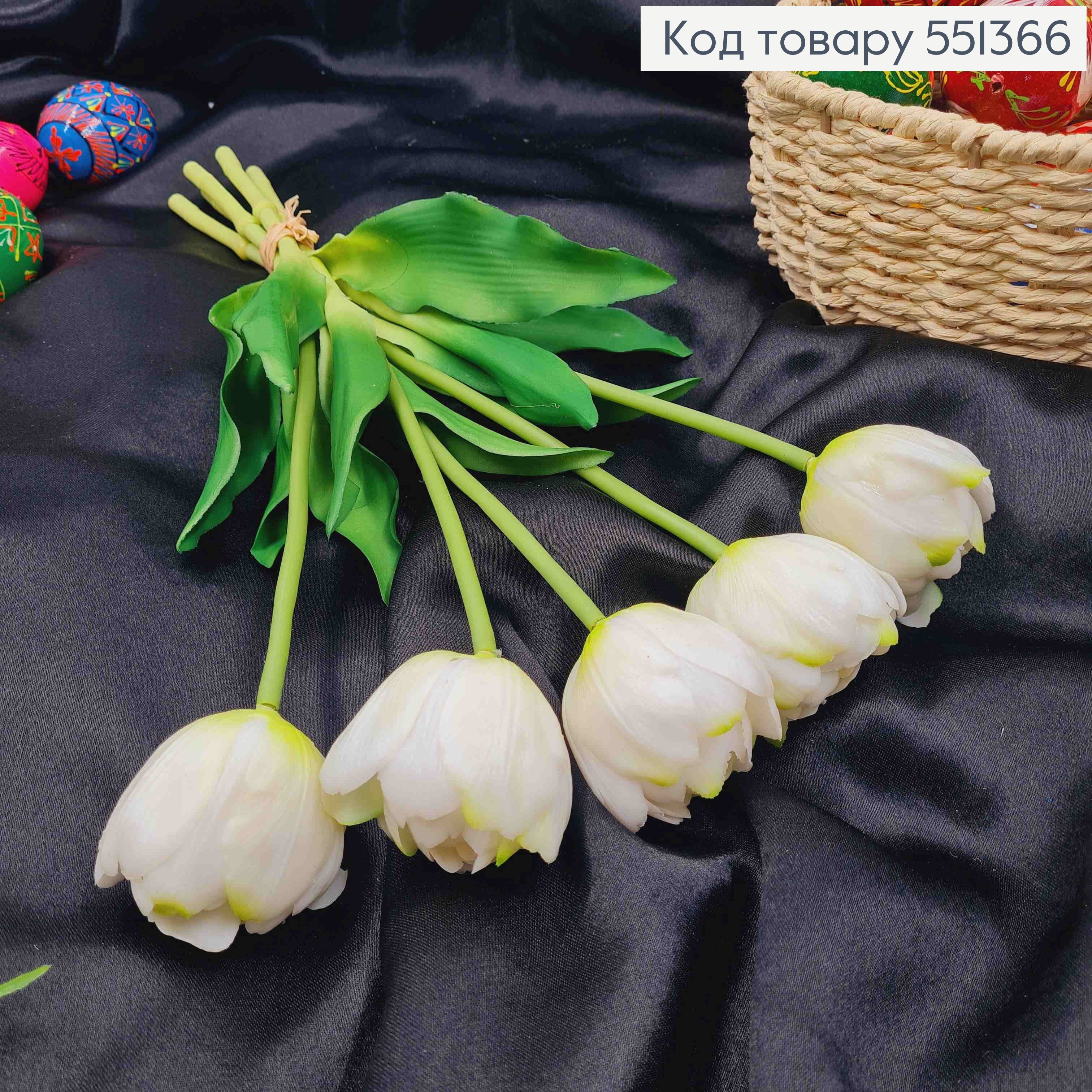 Искусственные цветы ТЮЛЬПАН Пионовидный, Белого цвета (латексные), 5шт/букет, выс. 38см, цветок 4см