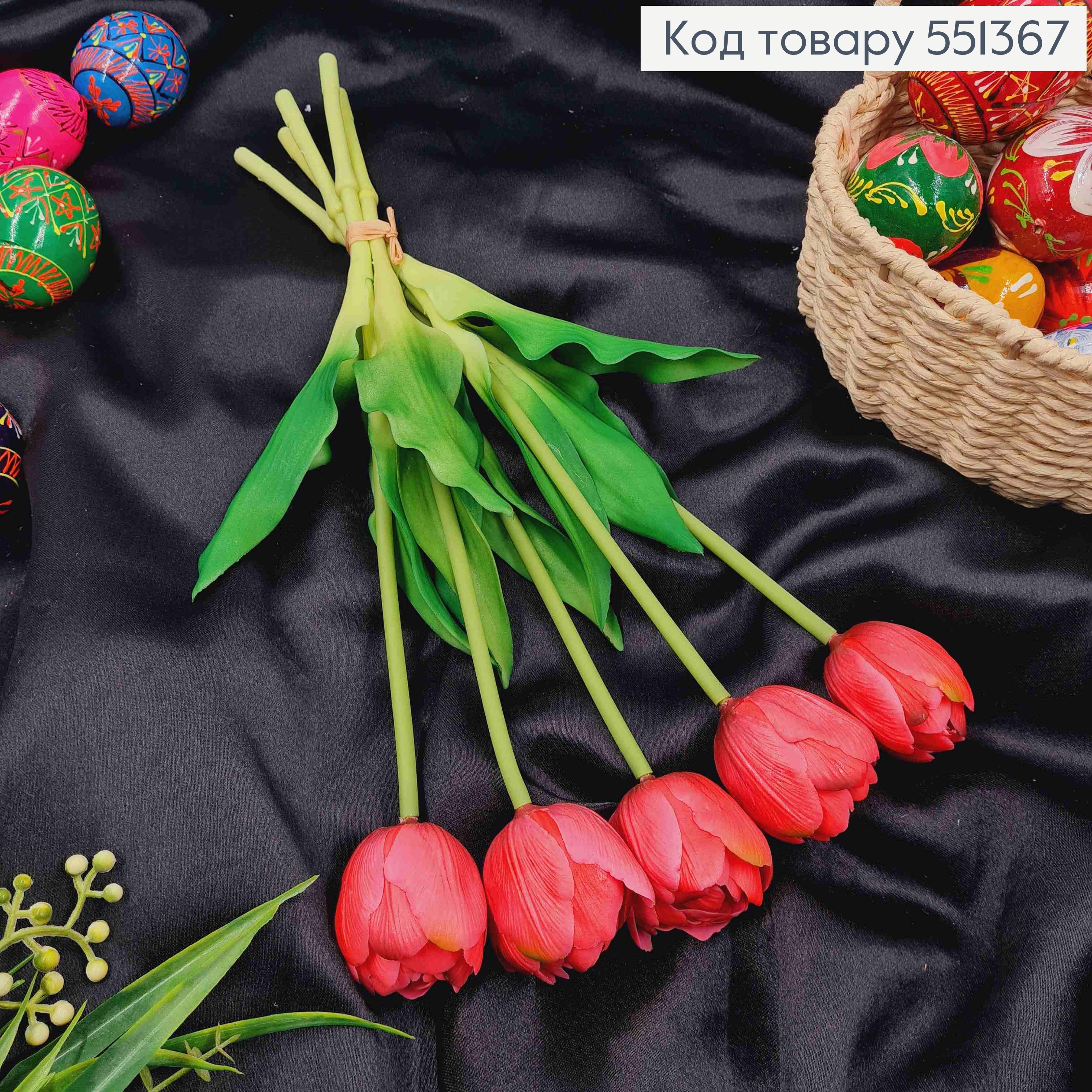 Искусственные цветы ТЮЛЬПАН Пионовидный, Темно-Розовые (латексные, 5шт/букет, выс. 38см, цветок 4см