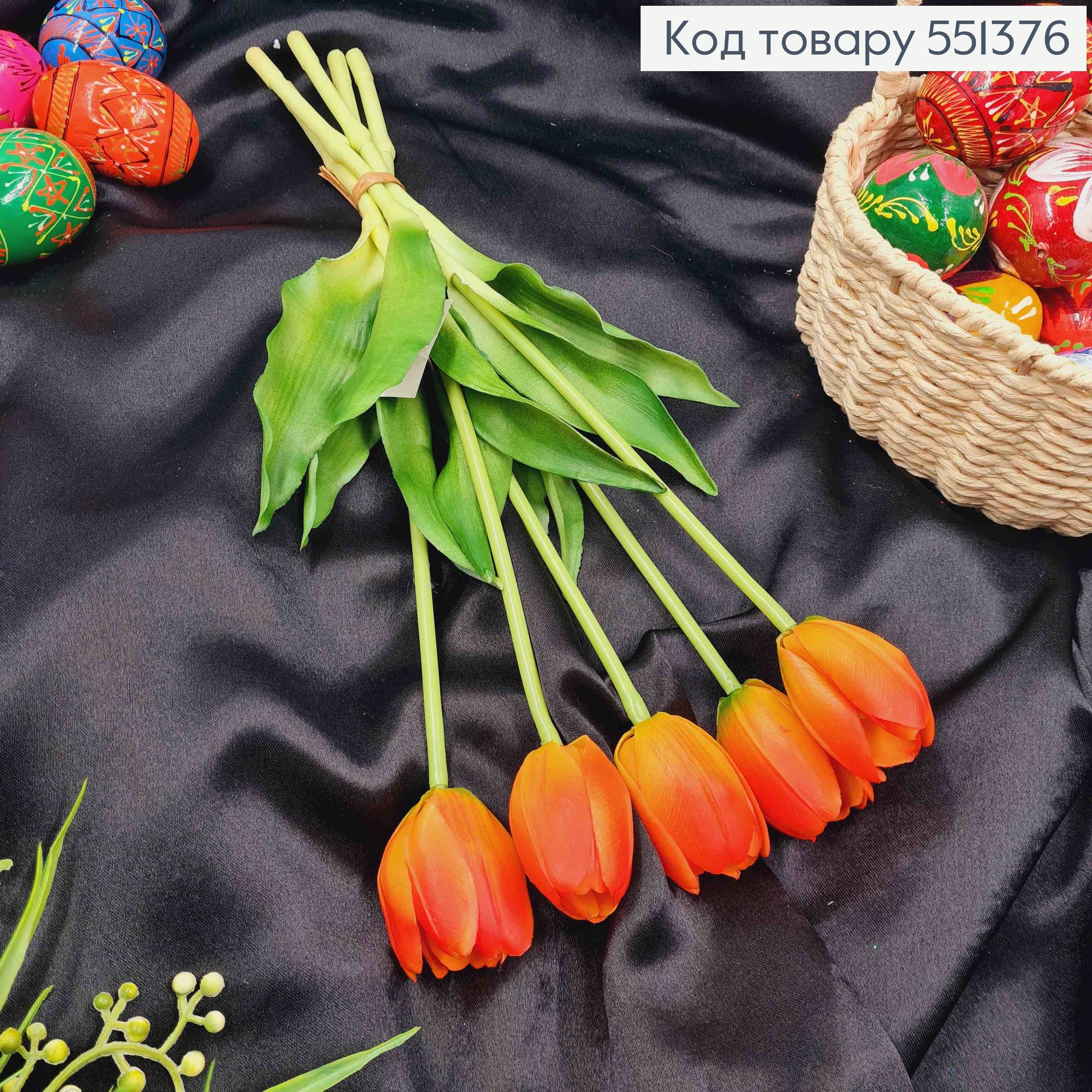 Искусственные цветы ТЮЛЬПАН, Оранжево-Красного цвета (латексные), 5шт/букет, выс. 38см, цветок 4см
