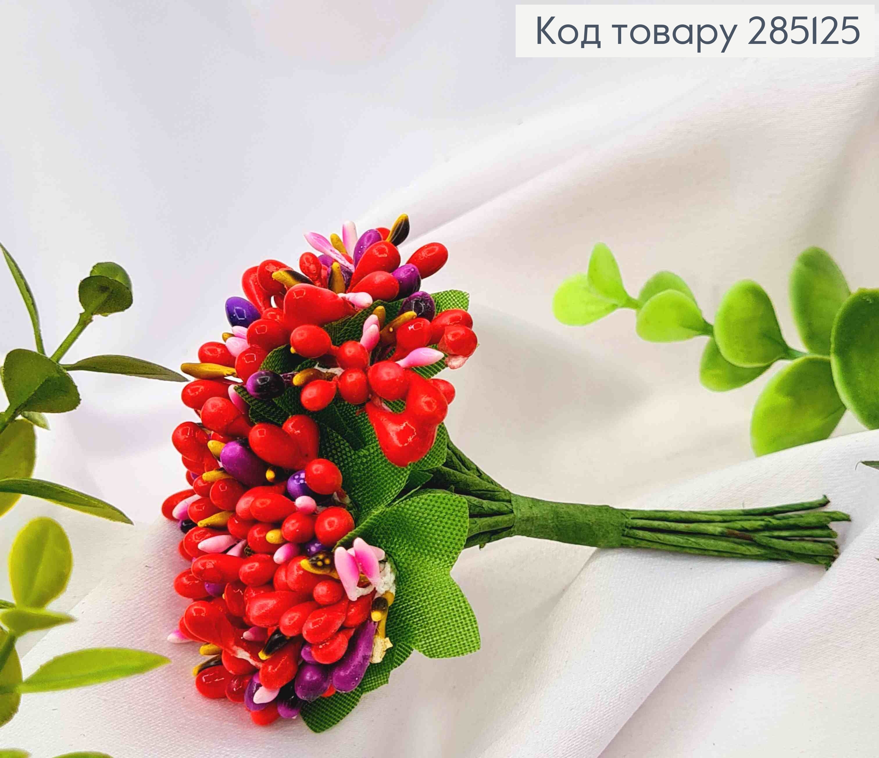 Искусственное приложение Тычинки 12 веточек в пучке, КРАСНЫЙ с фиолетовыми вставками цвета, 9см.