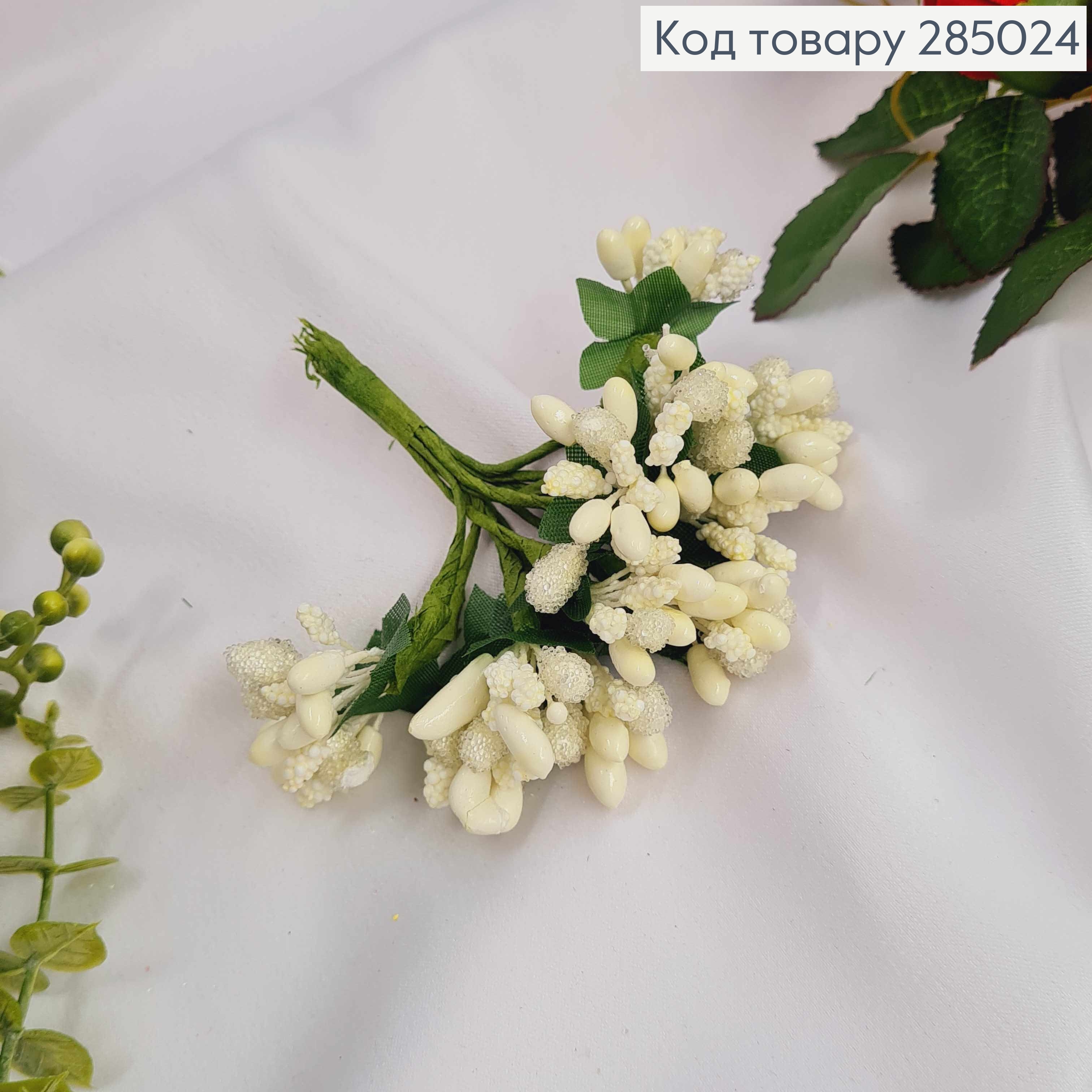Искусственное приложение Тычинки 12 веточек в пучке, МОЛОЧНОГО цвета, 9см