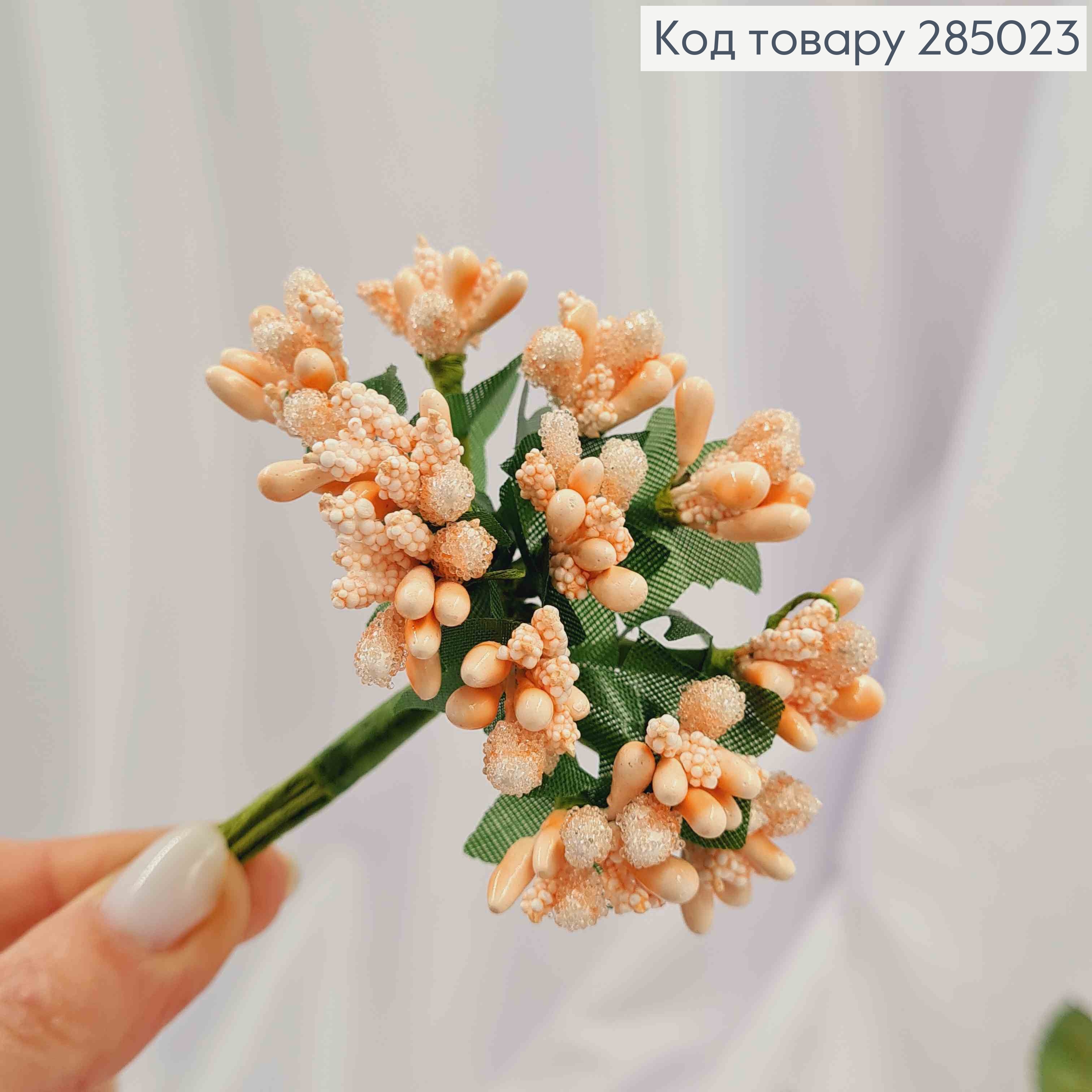 Искусственное приложение Тычинки 12 веточек в пучке, ПУДРОВОГО цвета, 9см
