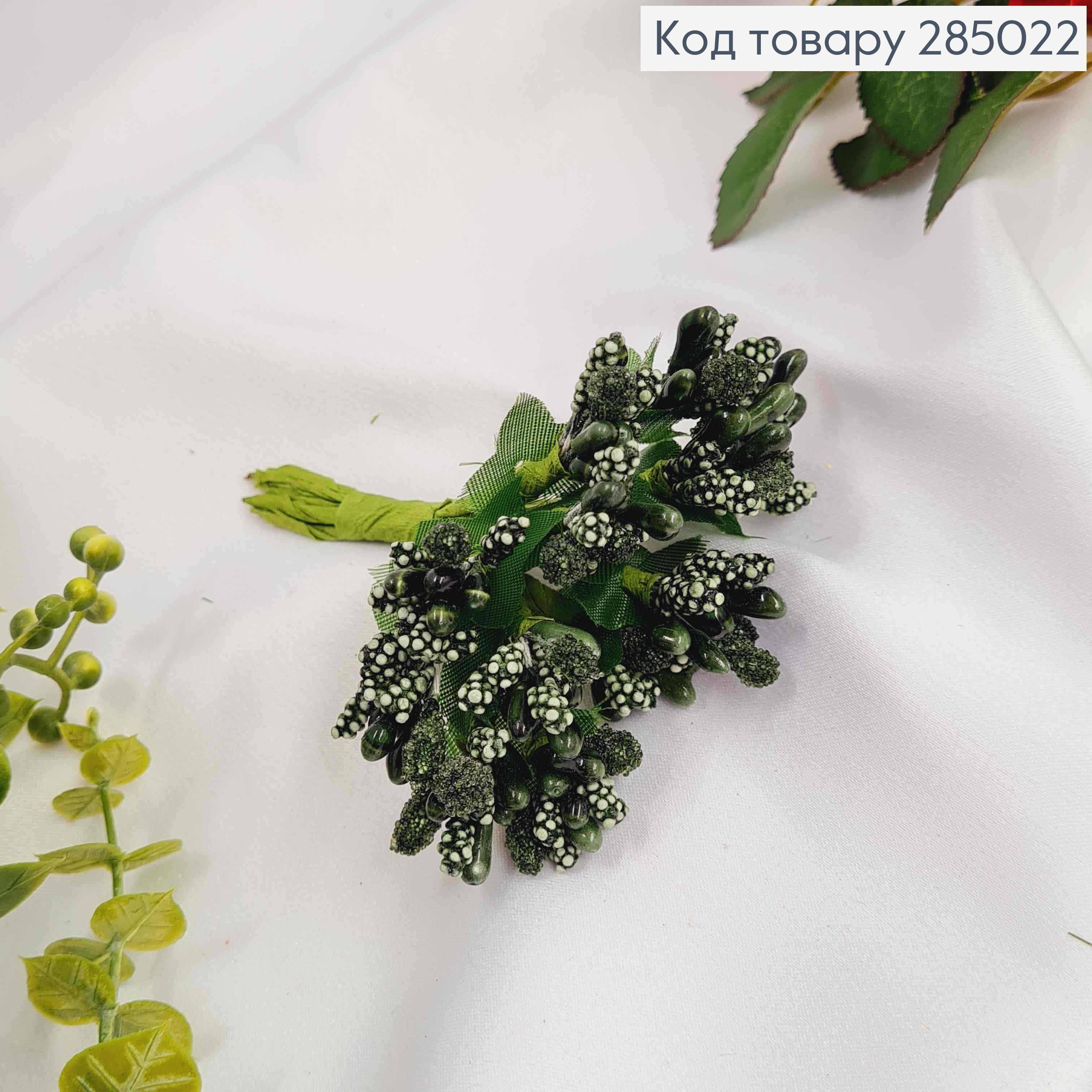 Искусственное приложение Тычинки 12 веточек в пучке, ИЗУМРУДНОГО цвета, 9см