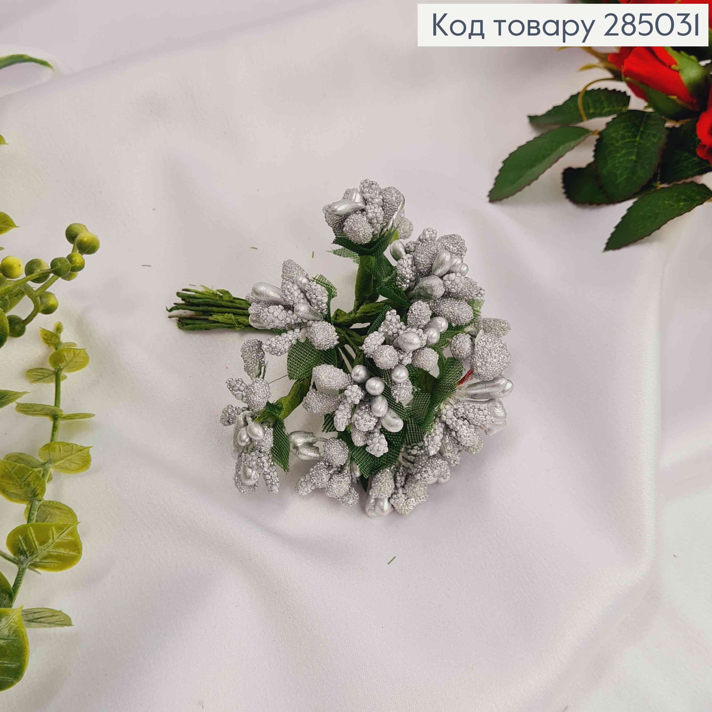 Искусственное приложение Тычинки 12 веточек в пучке, СЕРЕБРЯНОГО цвета, 9см