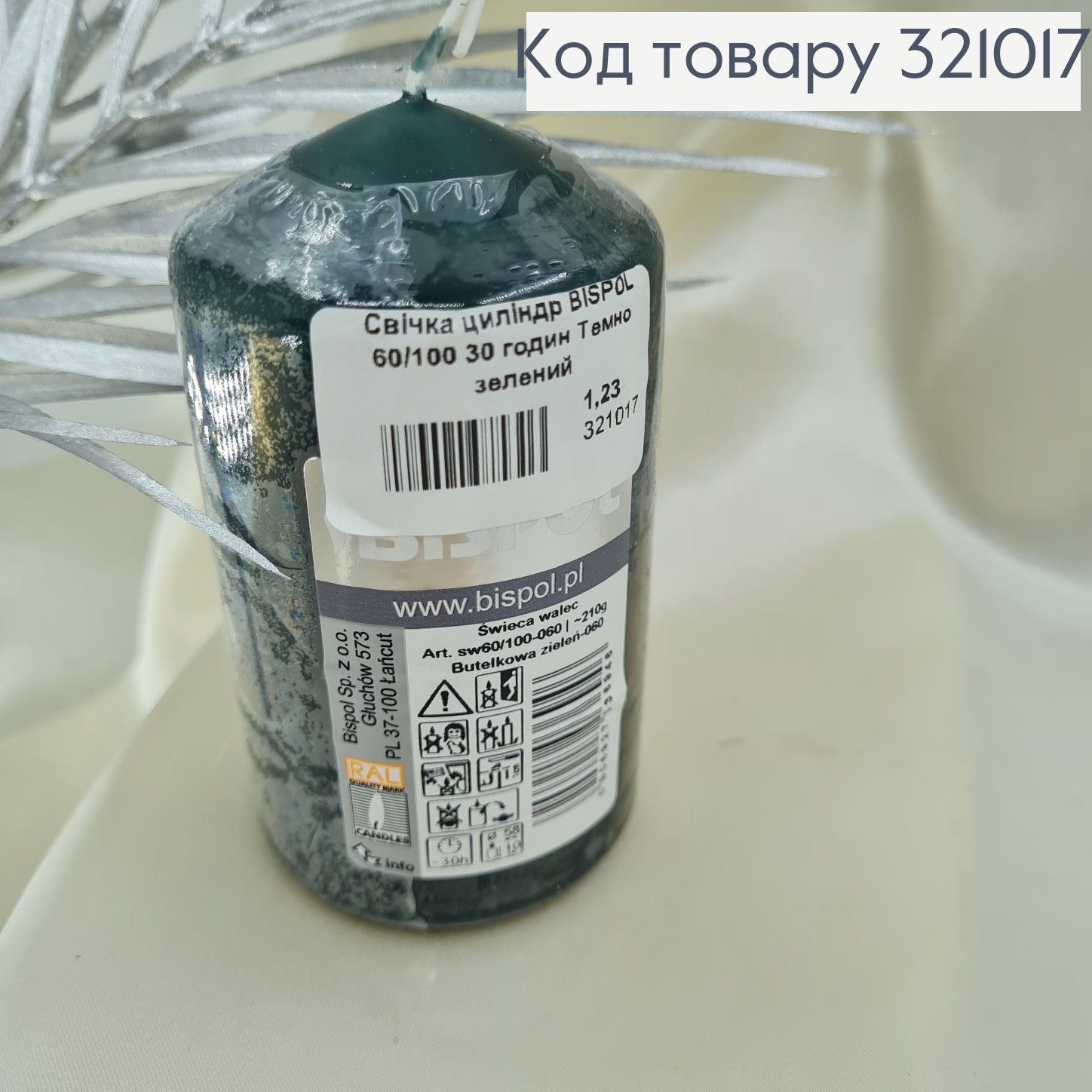 Свеча цилиндр BISPOL 60/100 30 часов Темно зеленый