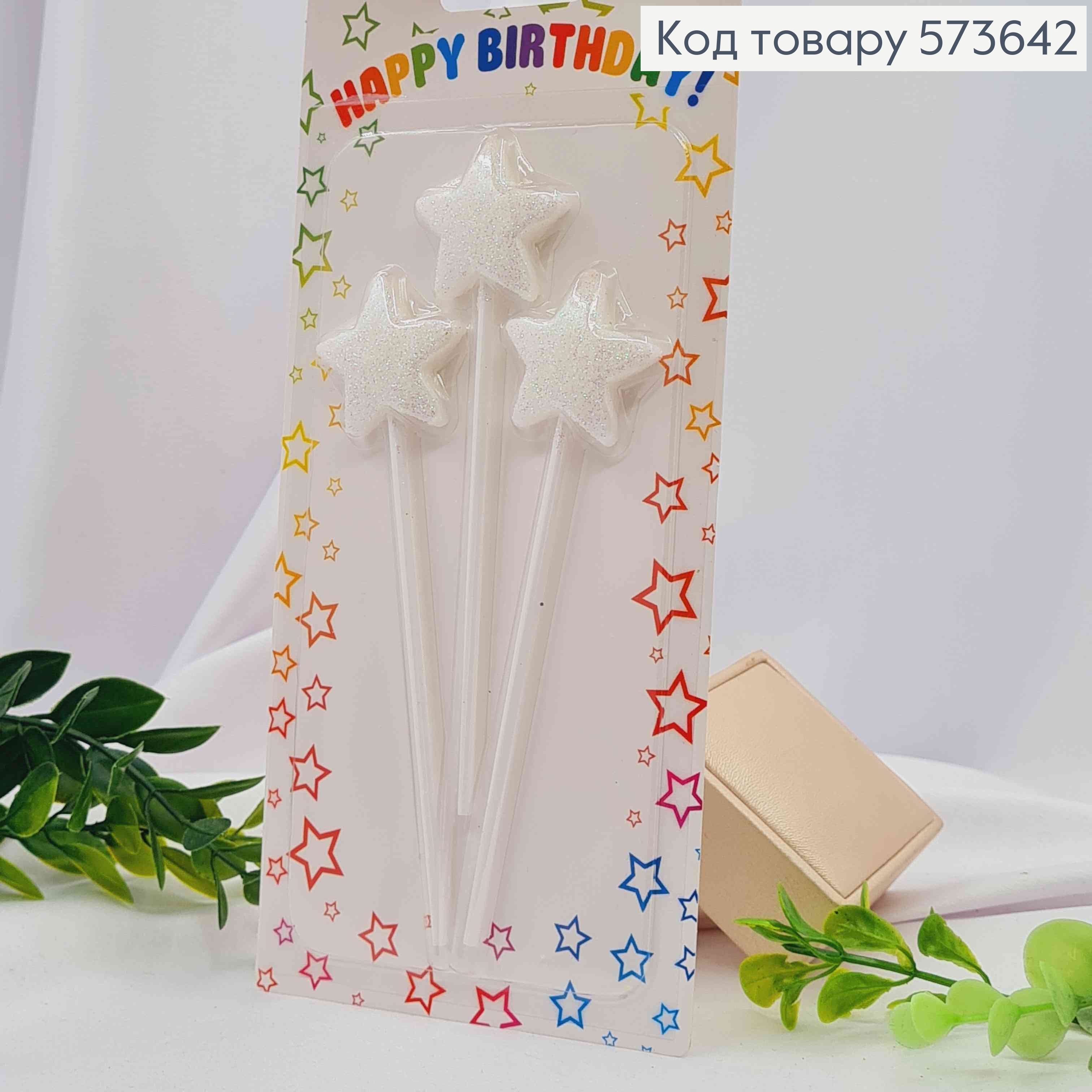Свечи для торта "Звездочки", Белого цвета с глитером, 3шт/уп., 3,5+10см