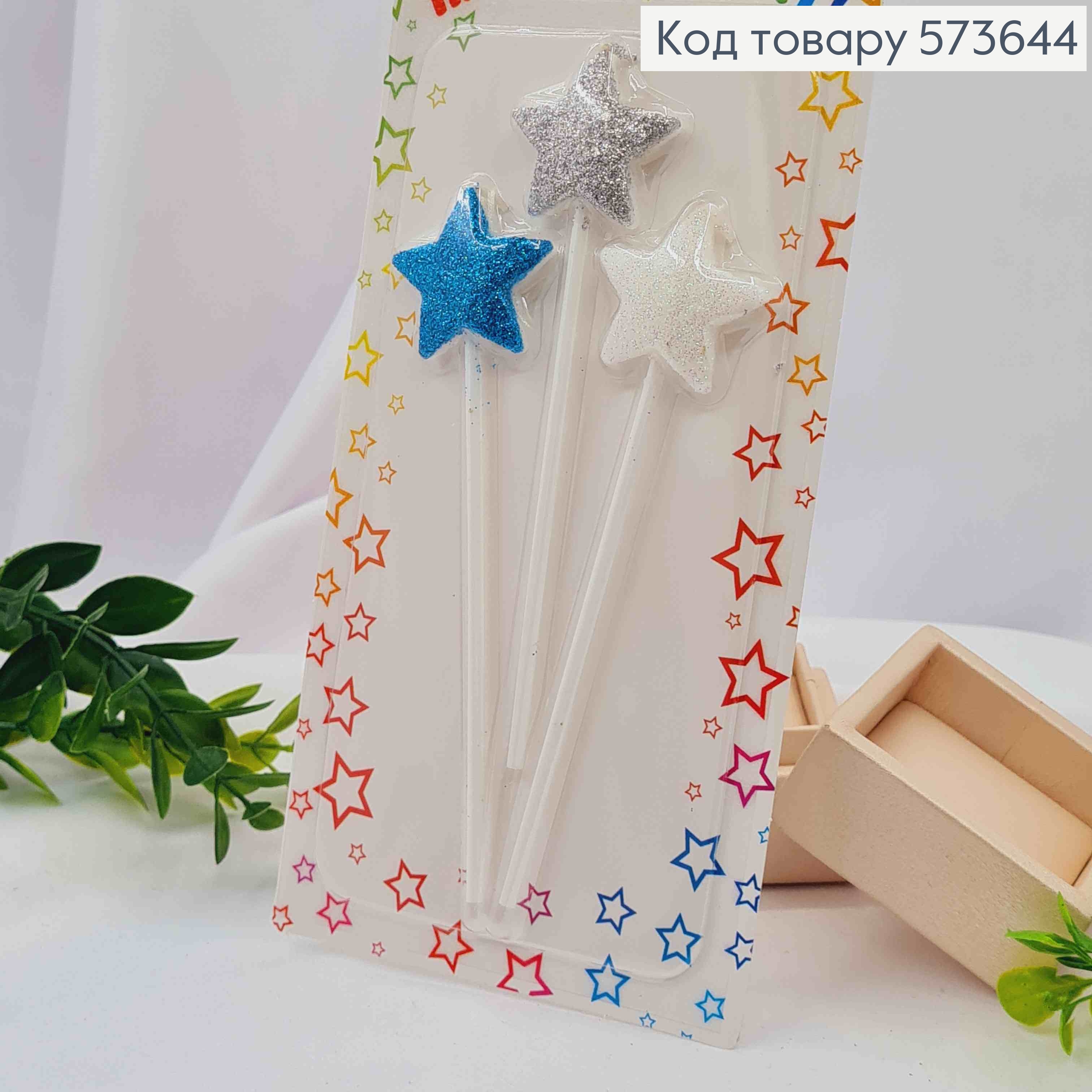 Свечи для торта "Звездочки", Разноцветные с глитером, 3шт/уп., 3,5+10см 573643 фото