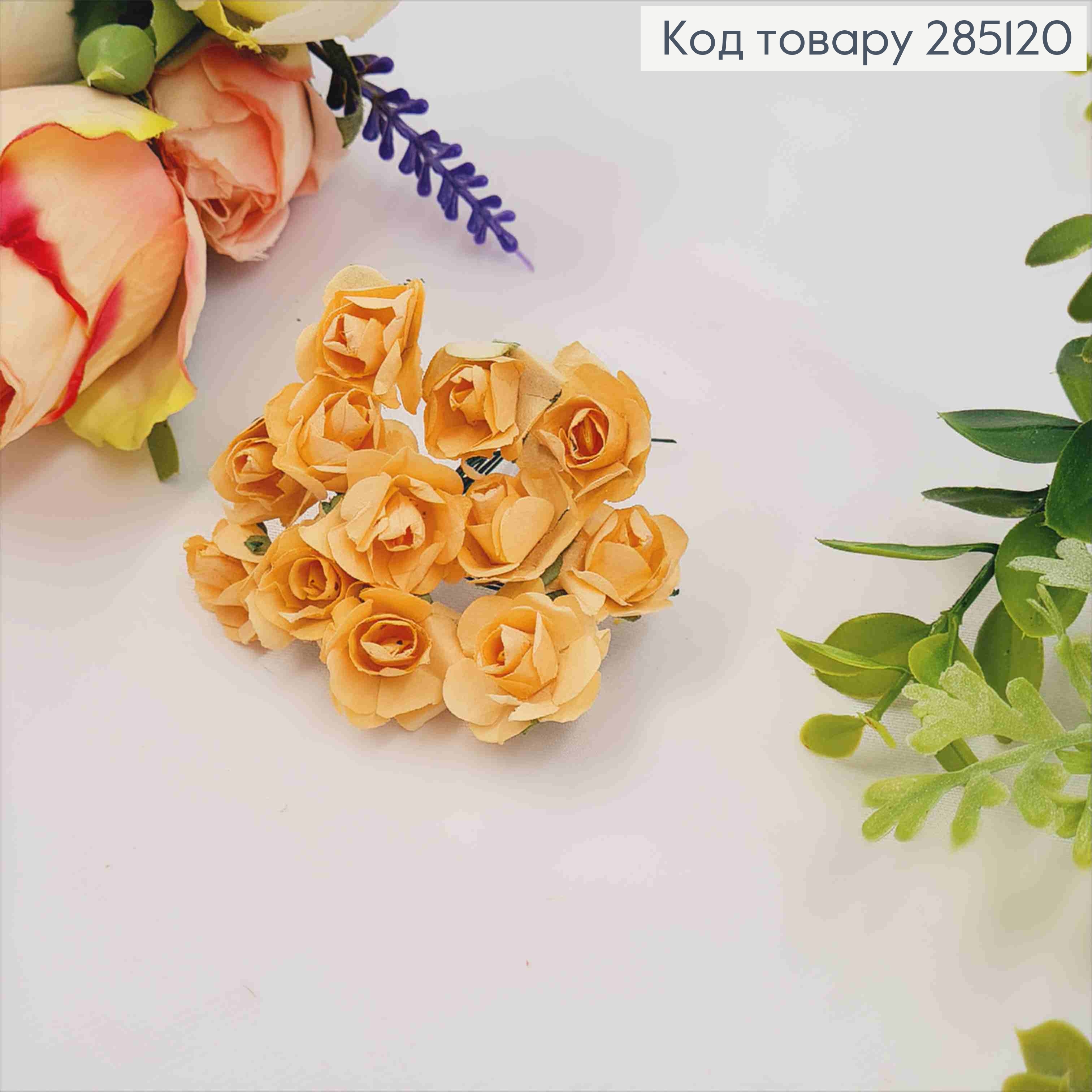 Розы (пучок 12шт) бумажные персиковые (1,5см) на дротике 6см
