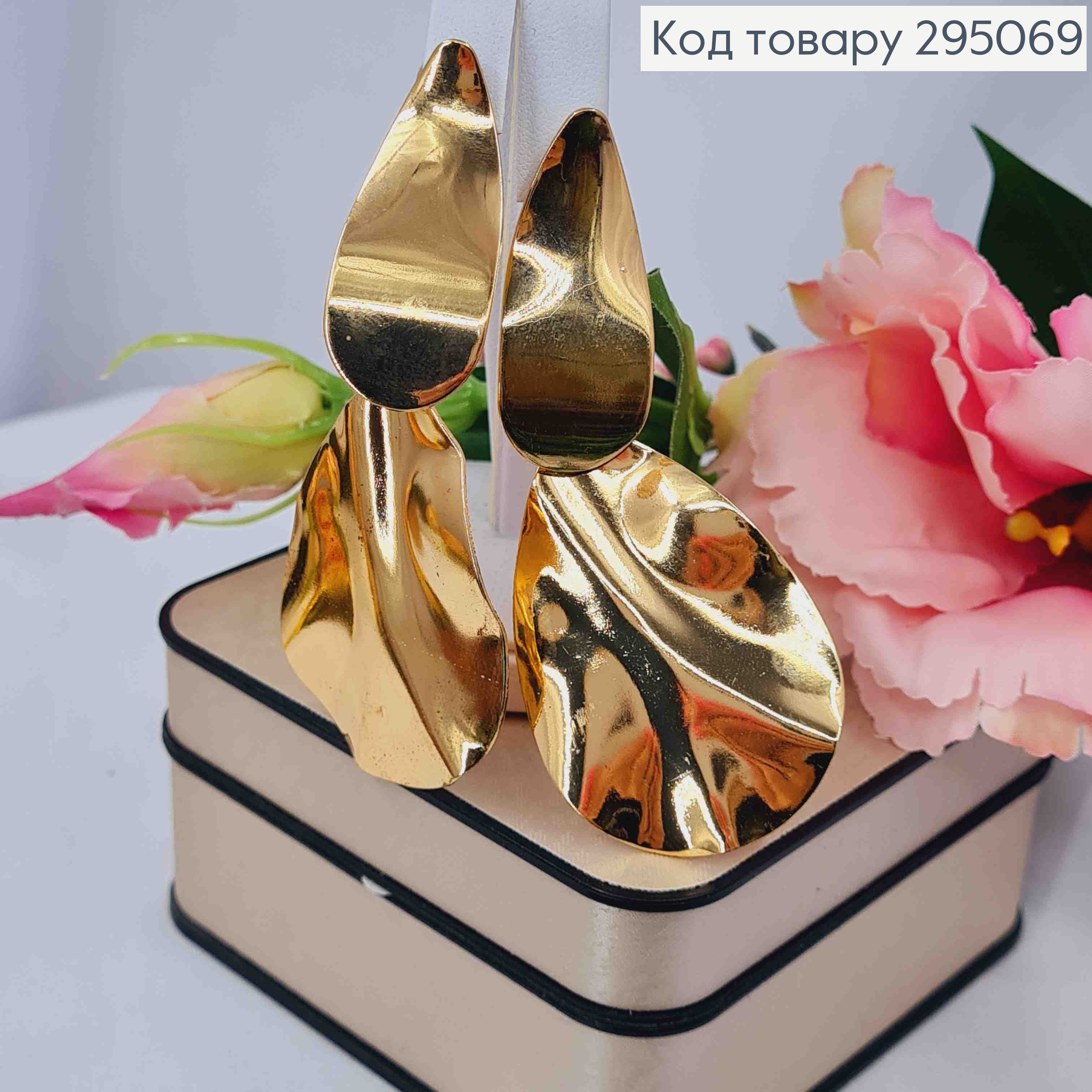 Вечерние серьги гвоздики, с подвеской "Лепесток", 3,8+4,5см, Золотого цвета