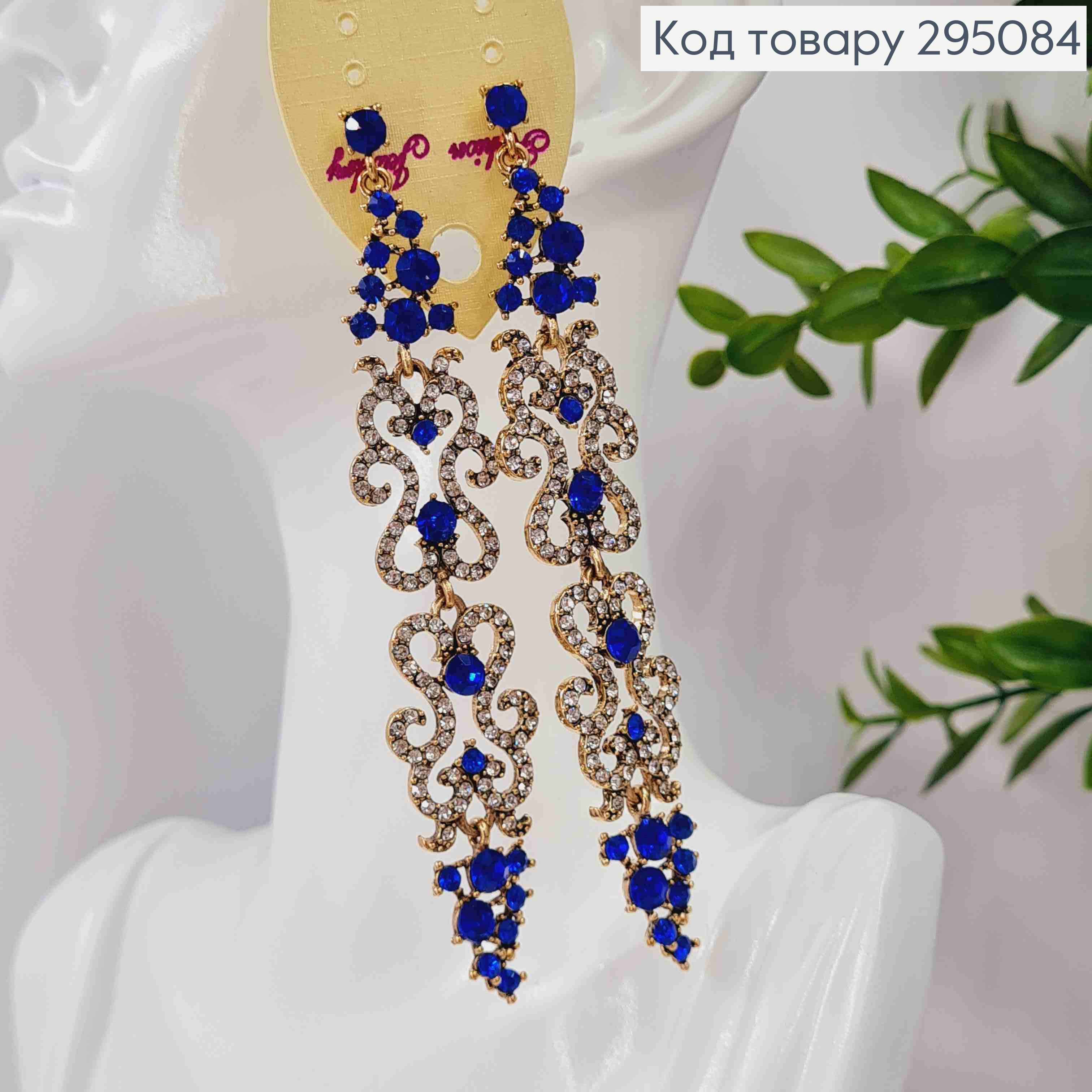 Вечерние-Свадебные серьги гвоздики, "АЖУРНЫЕ" украшены Синими камешками, 10,5см, золотого цвета
