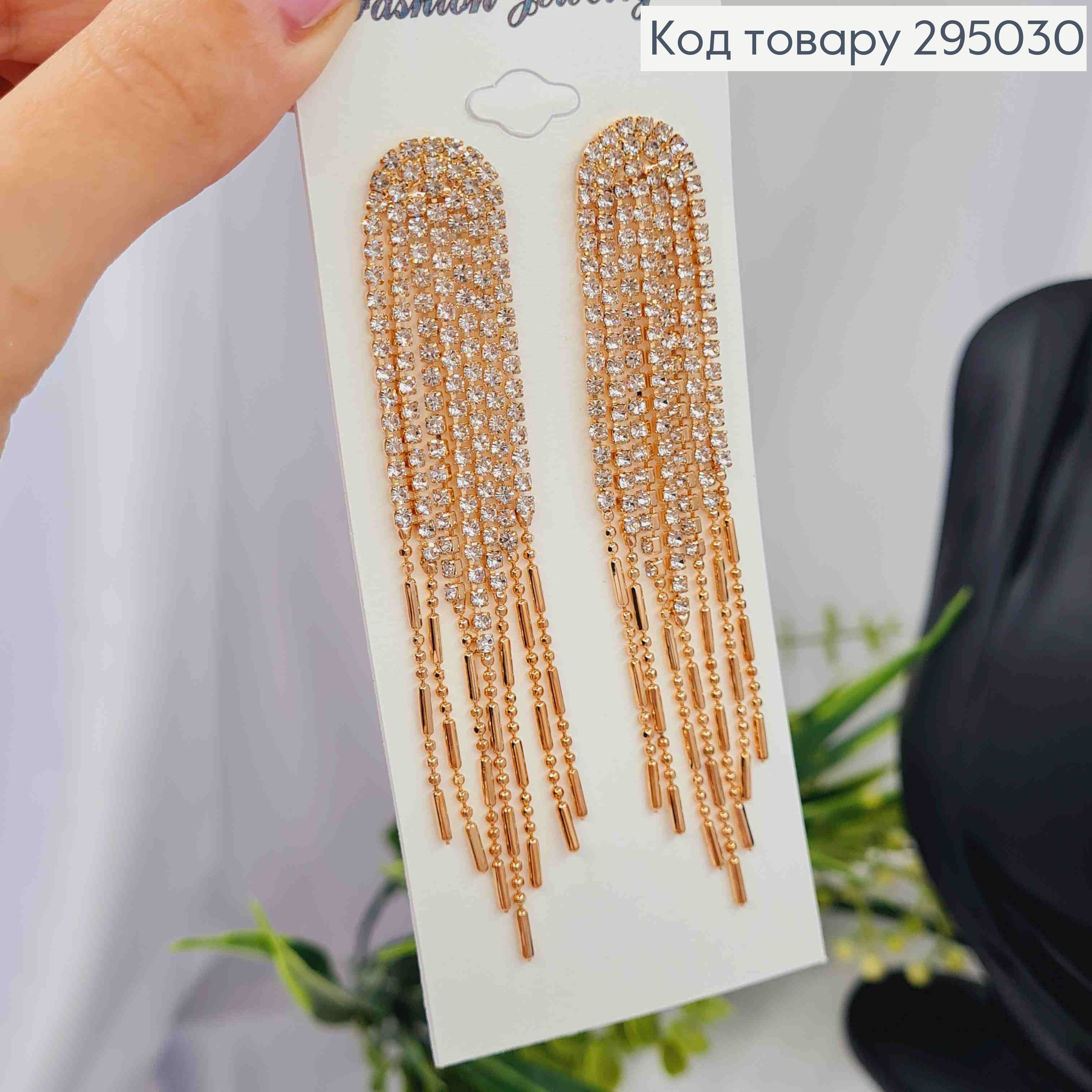 Вечерние-Свадебные серьги гвоздики, "АЖУРНЫЕ" украшены Блестящими камешками, 10,5см, золотого цвета 295086 фото