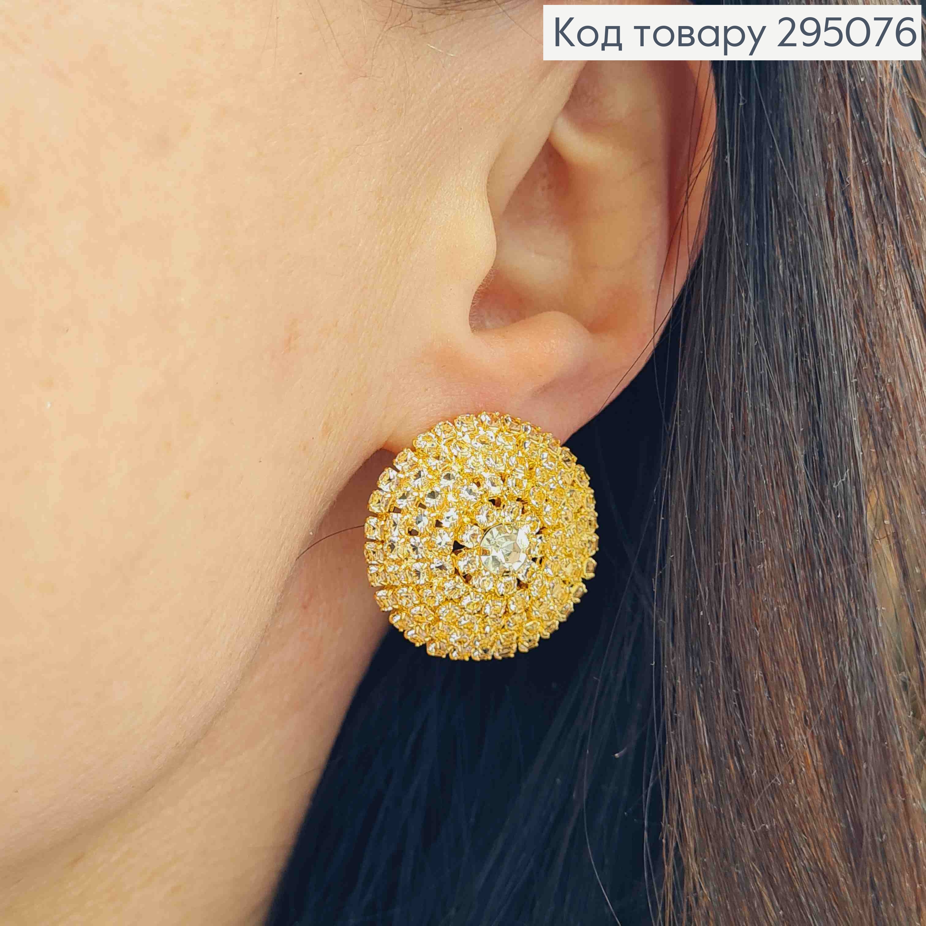 Вечерние-Свадебные серьги гвоздики, "АЖУРНЫЕ" украшены Блестящими камешками, 10,5см, золотого цвета 295086 фото