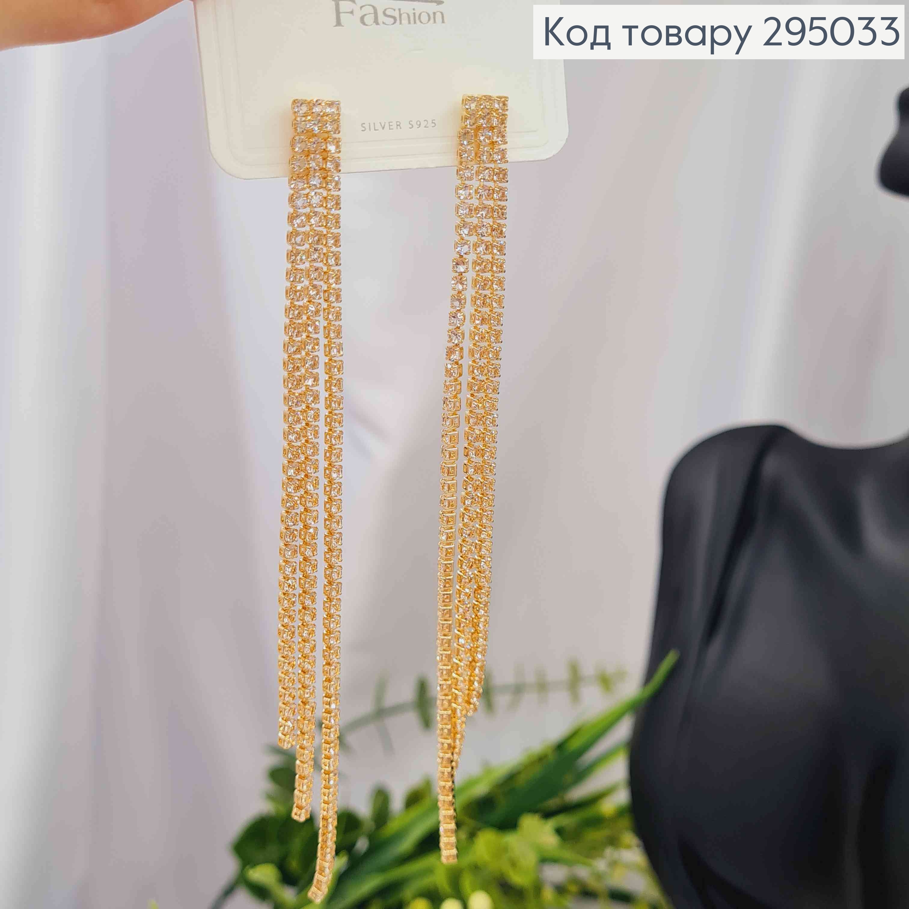 Вечерние-Свадебные серьги гвоздики, "АЖУРНЫЕ" украшены Блестящими камешками, 10,5см, золотого цвета 295086 фото