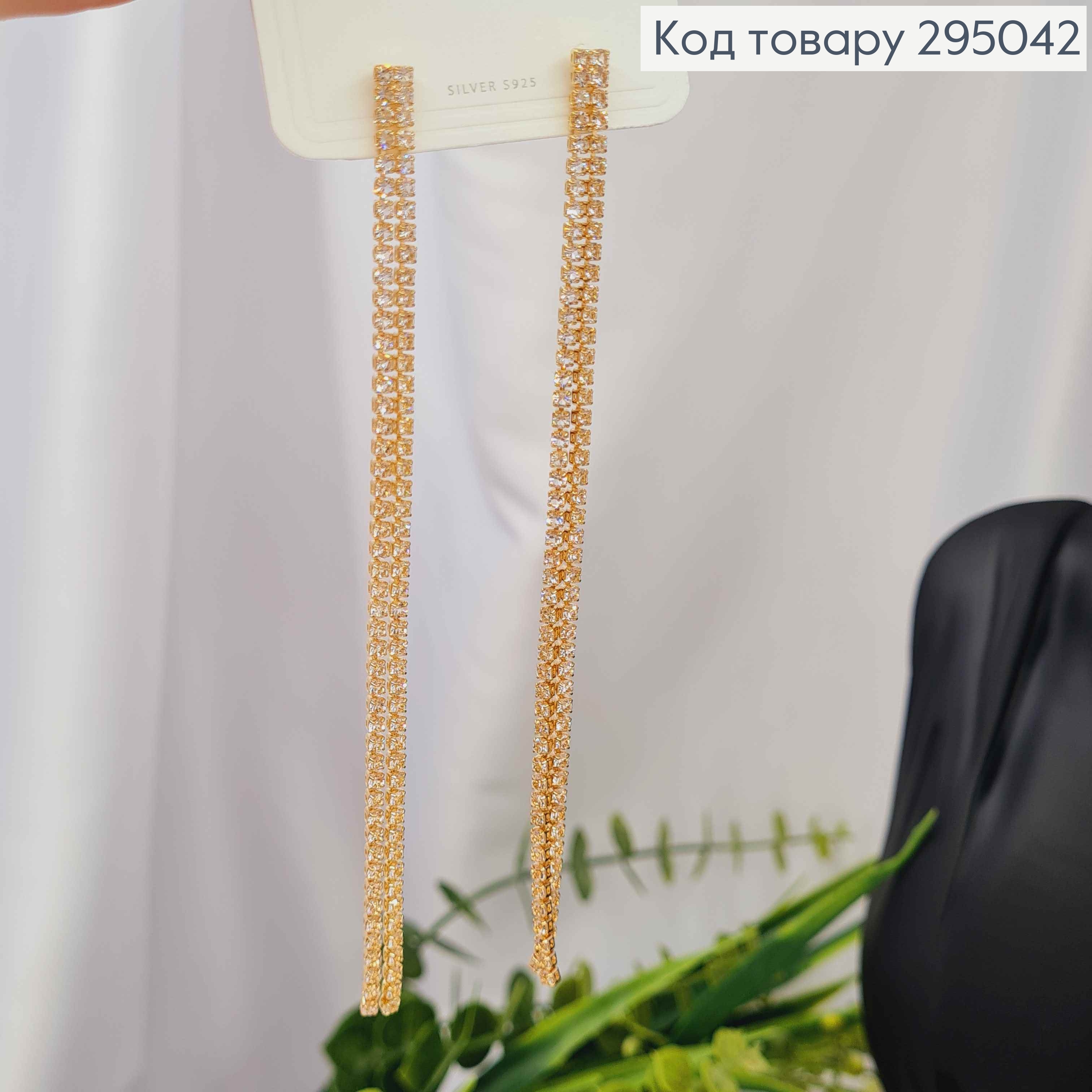 Вечерние-Свадебные серьги гвоздики, с блестящими камешками в два ряда, 11,5см, Золотого цвета