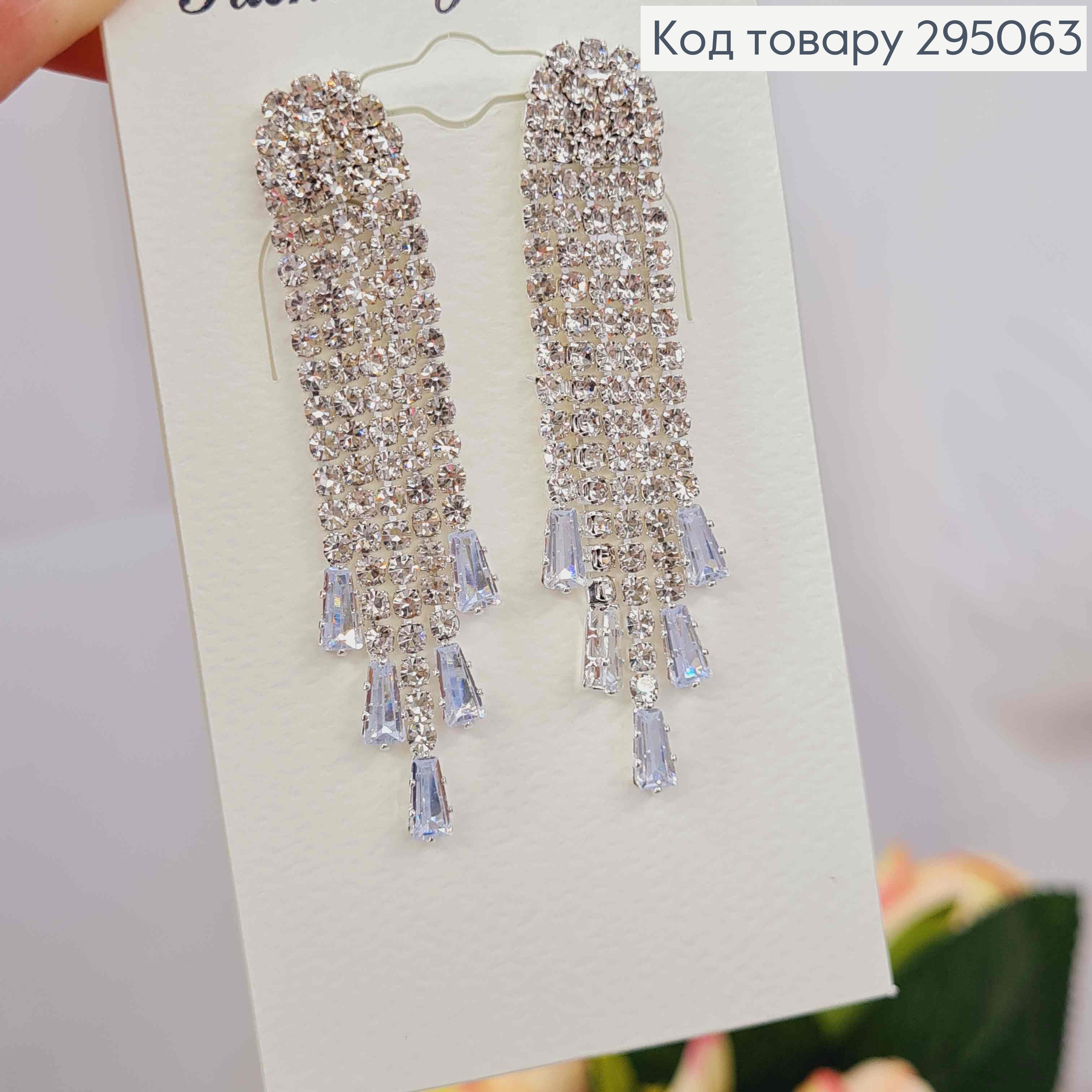 Вечерние-Свадебные серьги гвоздики, с цепочками из камней, 8,5см, Серебряного цвета 295025 фото